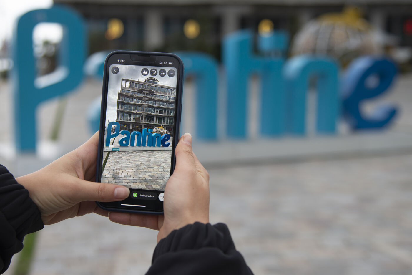 Le long du canal de l'Ourcq, les lettres géantes formant le nom "Pantin" installées place de la Pointe ont reçu un E supplémentaire.