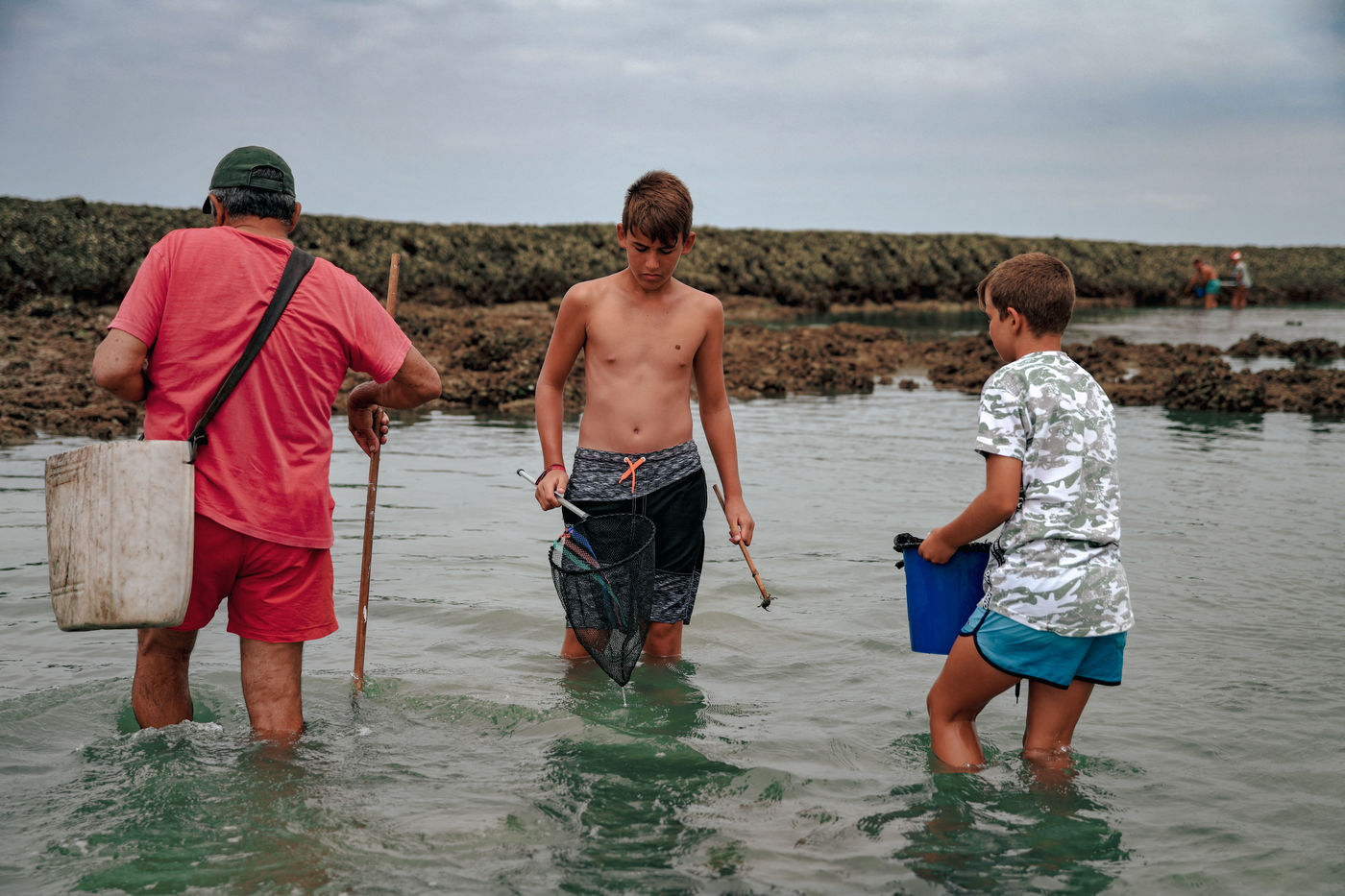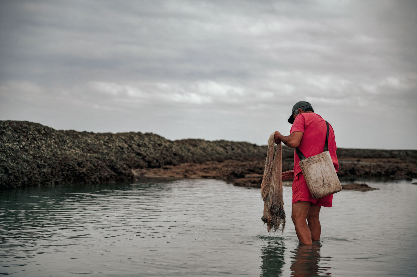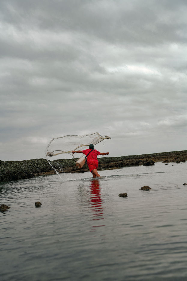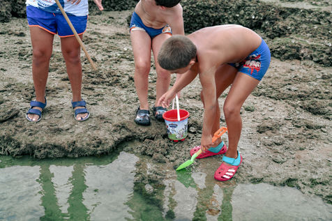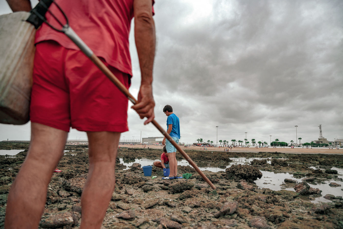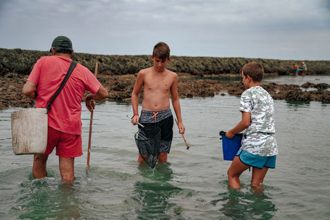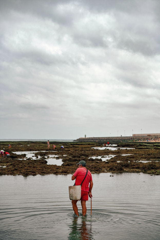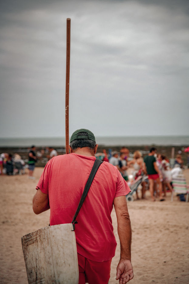 Let's go meet one of these fishermen, Manuel Ruiz Tirado, known as "El Lele", a native of Chipiona and a former deep-sea fisherman. For him, it is less important to fill his net with fish and crabs than to make vacationers aware of the fragility of these places. To children, he recommends releasing the small crabs that they catch so that they grow up. To adults, he explains how much the sunscreen of their skins acidifies the stagnant water of the sea at low tide thus unbalancing a fragile ecosystem. He demands that soda cans and cigarette butts not be thrown on the sand. He explains that the dirty diapers of babies do not really belong in the ocean. In short, he speaks to us of common sense. The good sense of the unspoken rules uniting us to nature; a good sense yet so mysteriously difficult to assimilate...