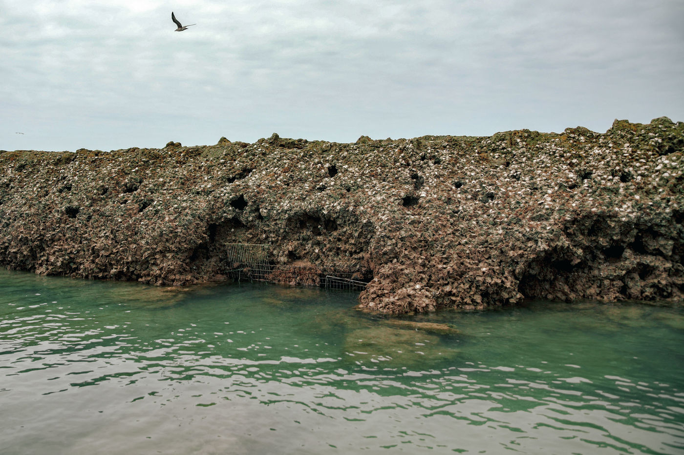 The parks were built with large stones at their base and the faults were filled with rubble. The oysters, the barnacles and the limes settling in the crevices of the rocks act as natural cement.