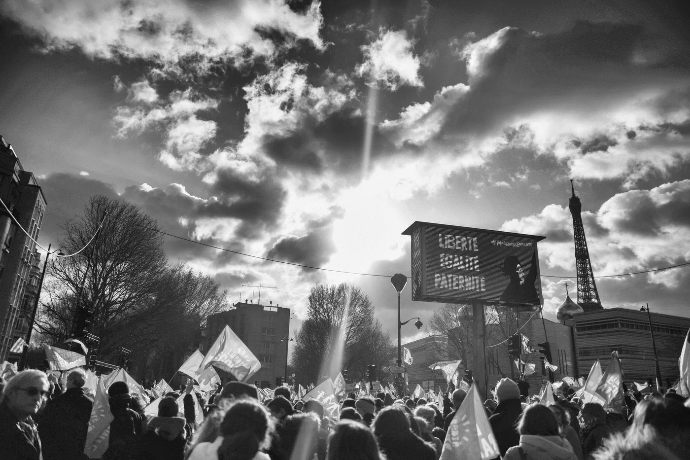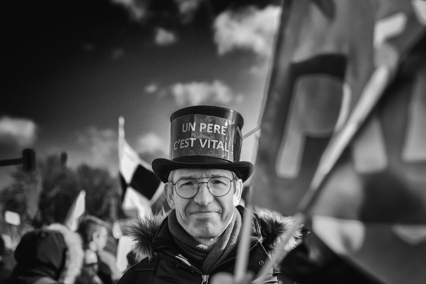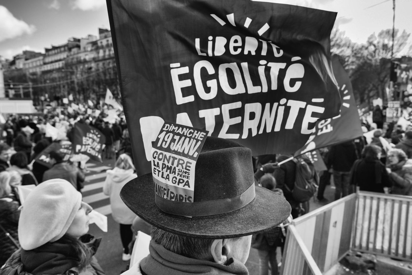 Un collectif d associations, dont la Manif pour tous, organise une manifestation ce dimanche 19 janvier a Paris pour demander le retrait du projet de loi de bioethique, examine a partir de mardi par le Senat. Environ 26 000 personnes ont assistes a la manifestation soit trois fois moins que lors de la manifestation en octobre 2019. Paris, France. 19 janvier 2020.