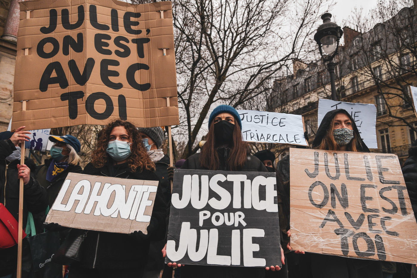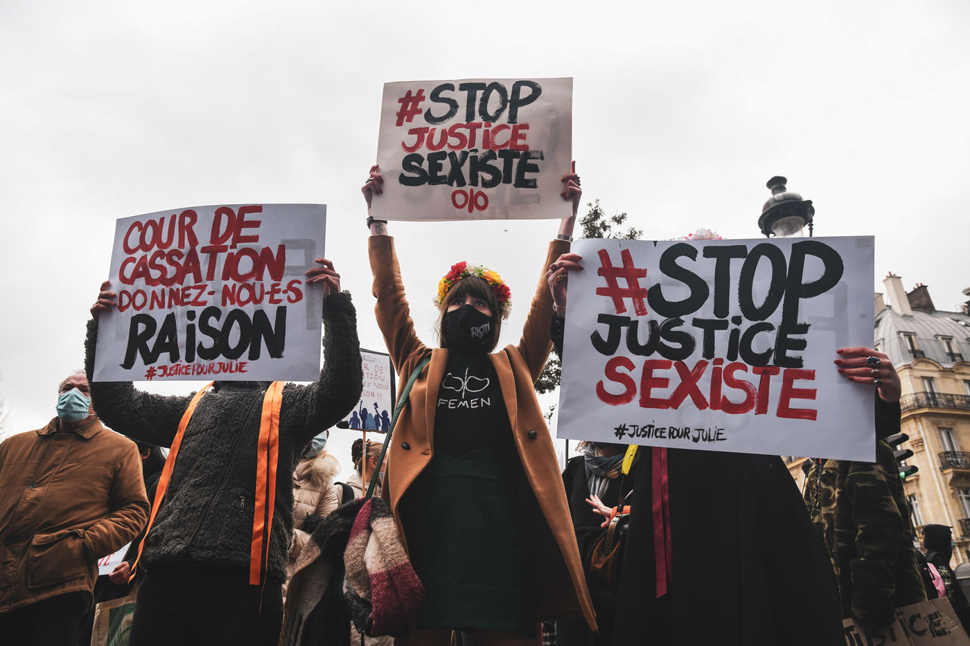 This rally, a few streets from the Courthouse, was organized before the examination on Wednesday by the Court of Cassation of the appeal of Julie (assumed name), who asks that her alleged attackers be tried for rape. Paris, February 7, 2021.