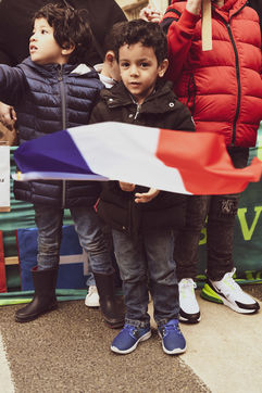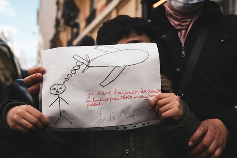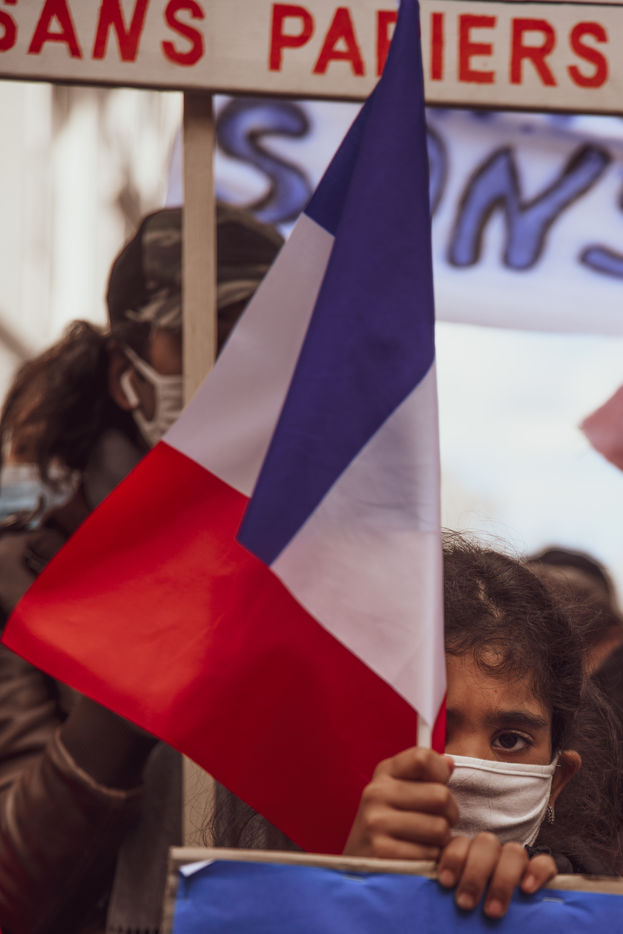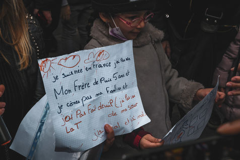 Rassemblement aux portes du ministère de l'éducation à l'appel de l'association Ensemble afin de sensibiliser demander la régularisation des familles sans papiers ayant des enfants scolarisés et les mineurs isoles. Paris, France. 23 février 2021.