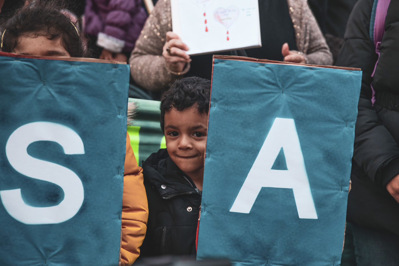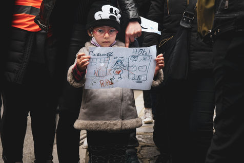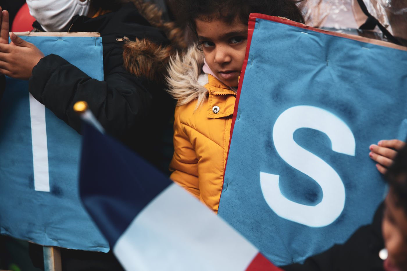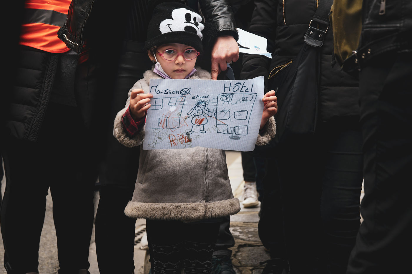 Gathering at the doors of the Ministry of Education at the call of the association Ensemble to raise awareness and demand the regularization of undocumented families with children in school and isolated minors. Paris, France. February 23, 2021.