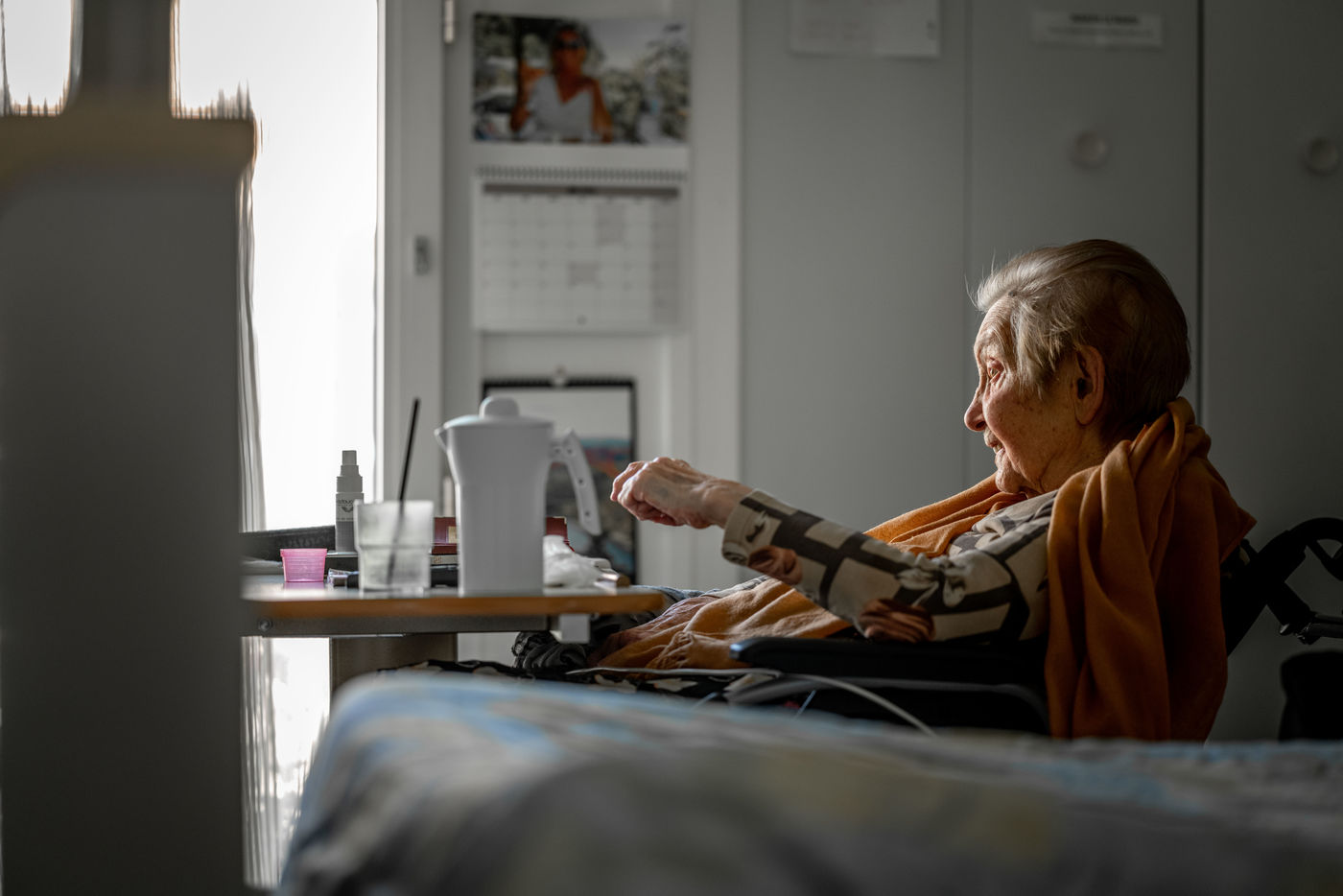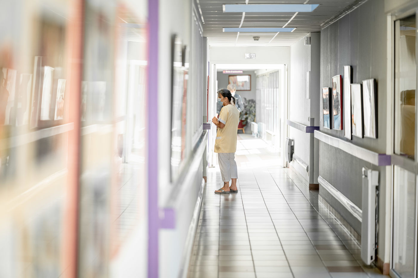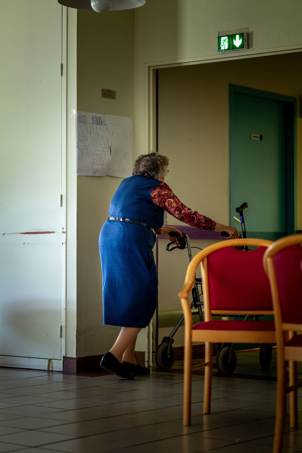 Instants de vie saisis au gré des couloirs de l'EHPAD d'Yvoy le Marron, La Résidence du Bourg, dirigé par Nathalie Sassus, aux côtés d'un personnel soignant d'une grande bienveillance et de résidents pour lesquels le temps se vit sur un fil.