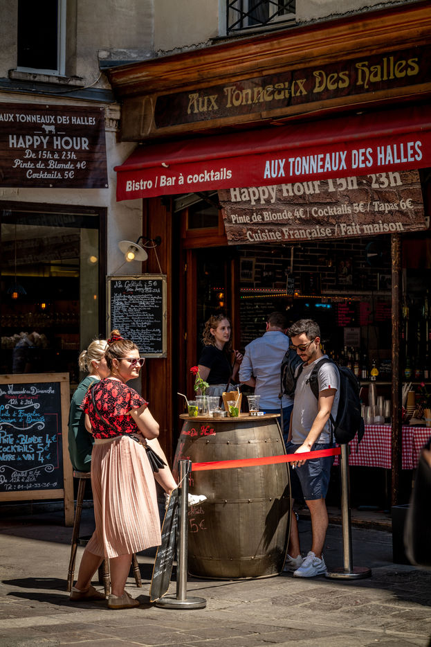 Photos of illustrations of Paris at the time of leaving lockdown. Reopening, preparation of the terraces...