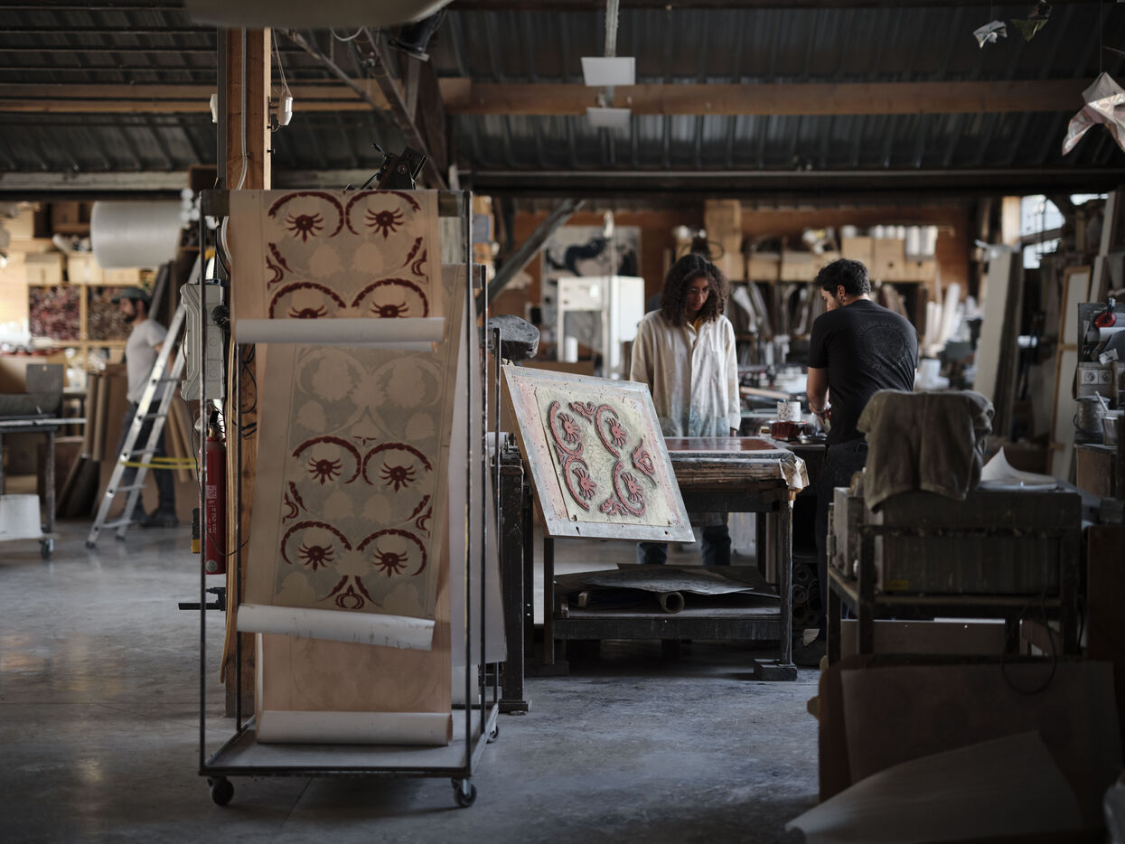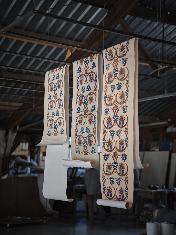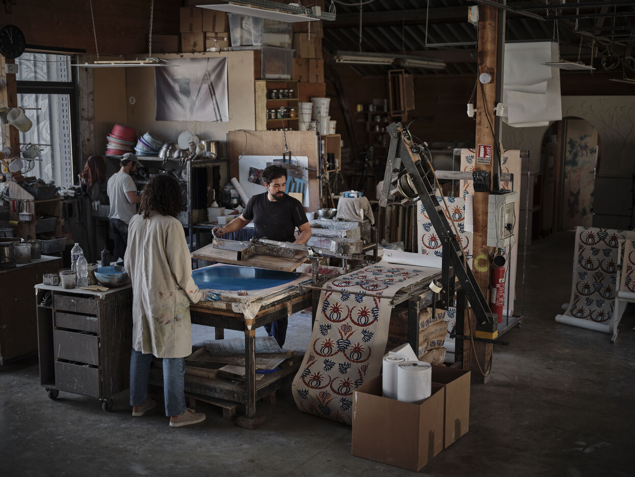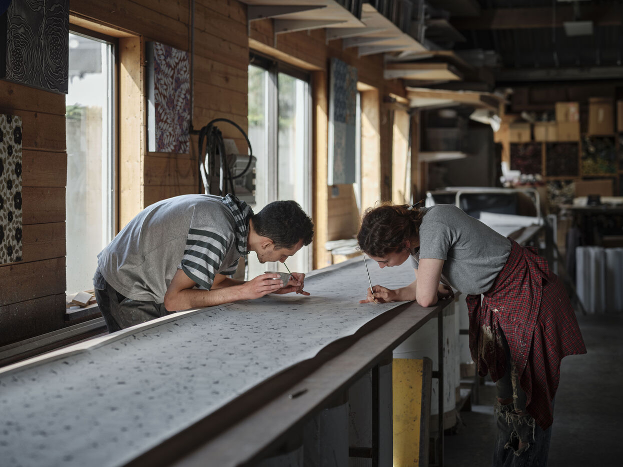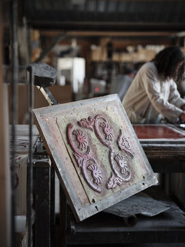 Discovering block printing on the premises of Atelier d'Offard, in Tours, and the manufacture of stoneboard.