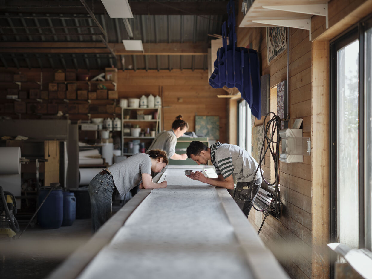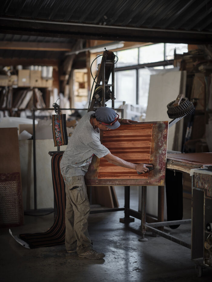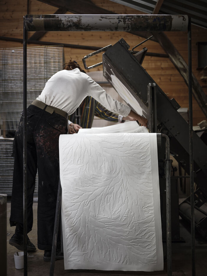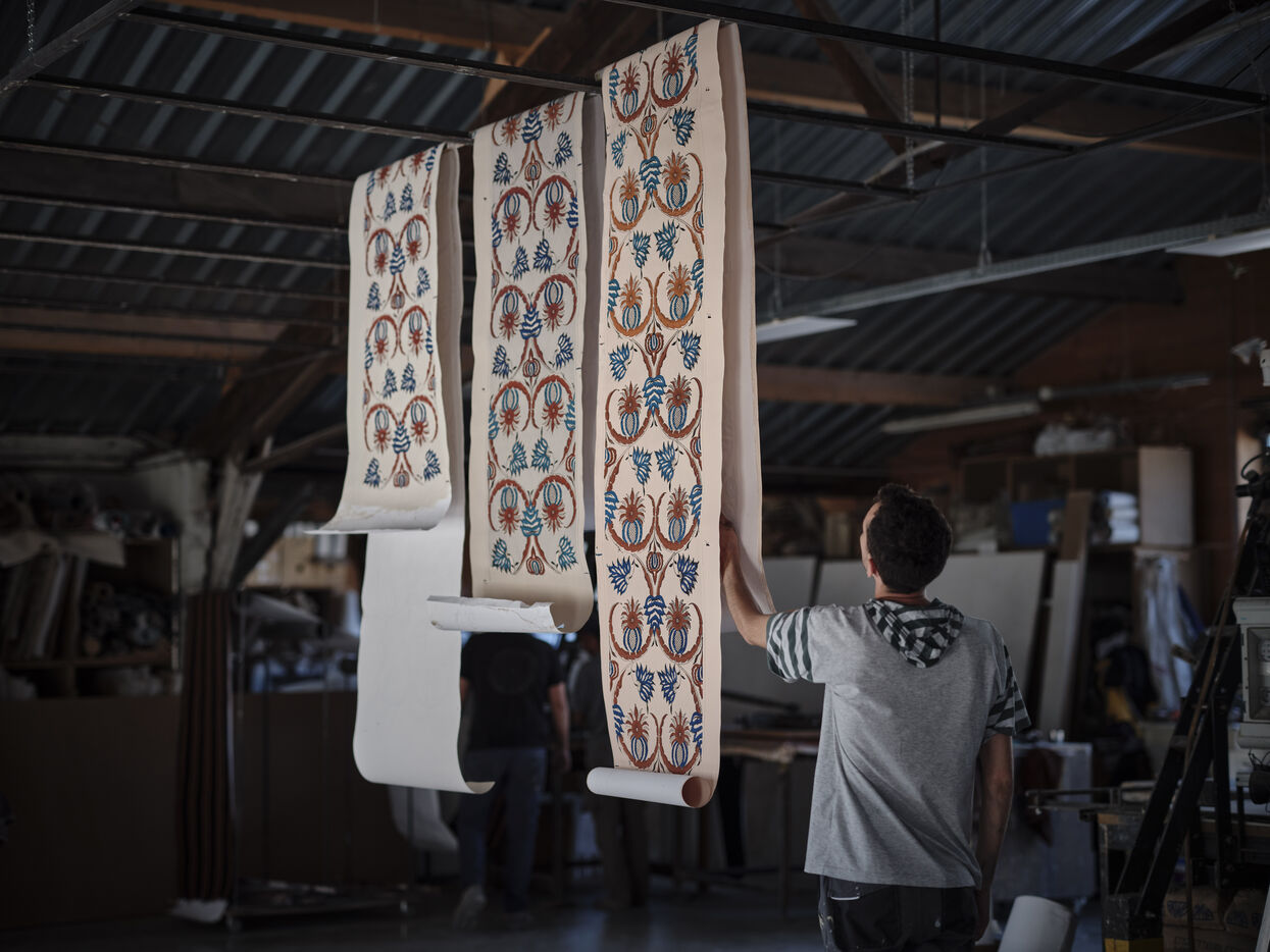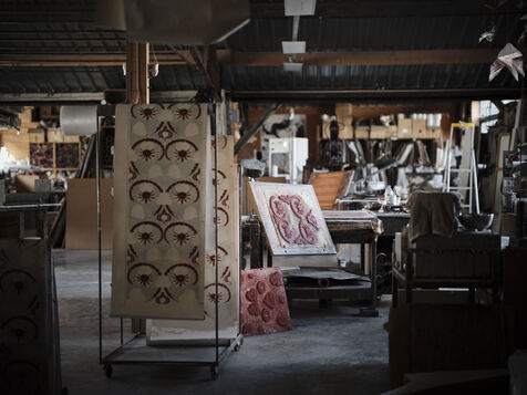 Discovering block printing on the premises of Atelier d'Offard, in Tours, and the manufacture of stoneboard.