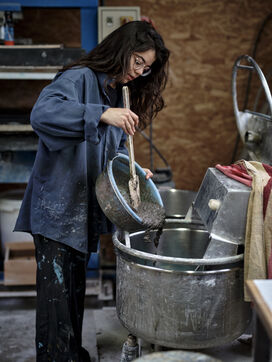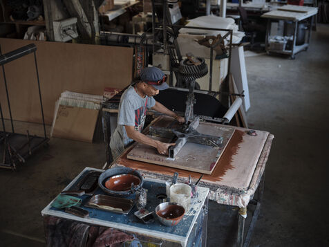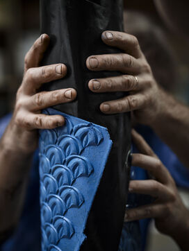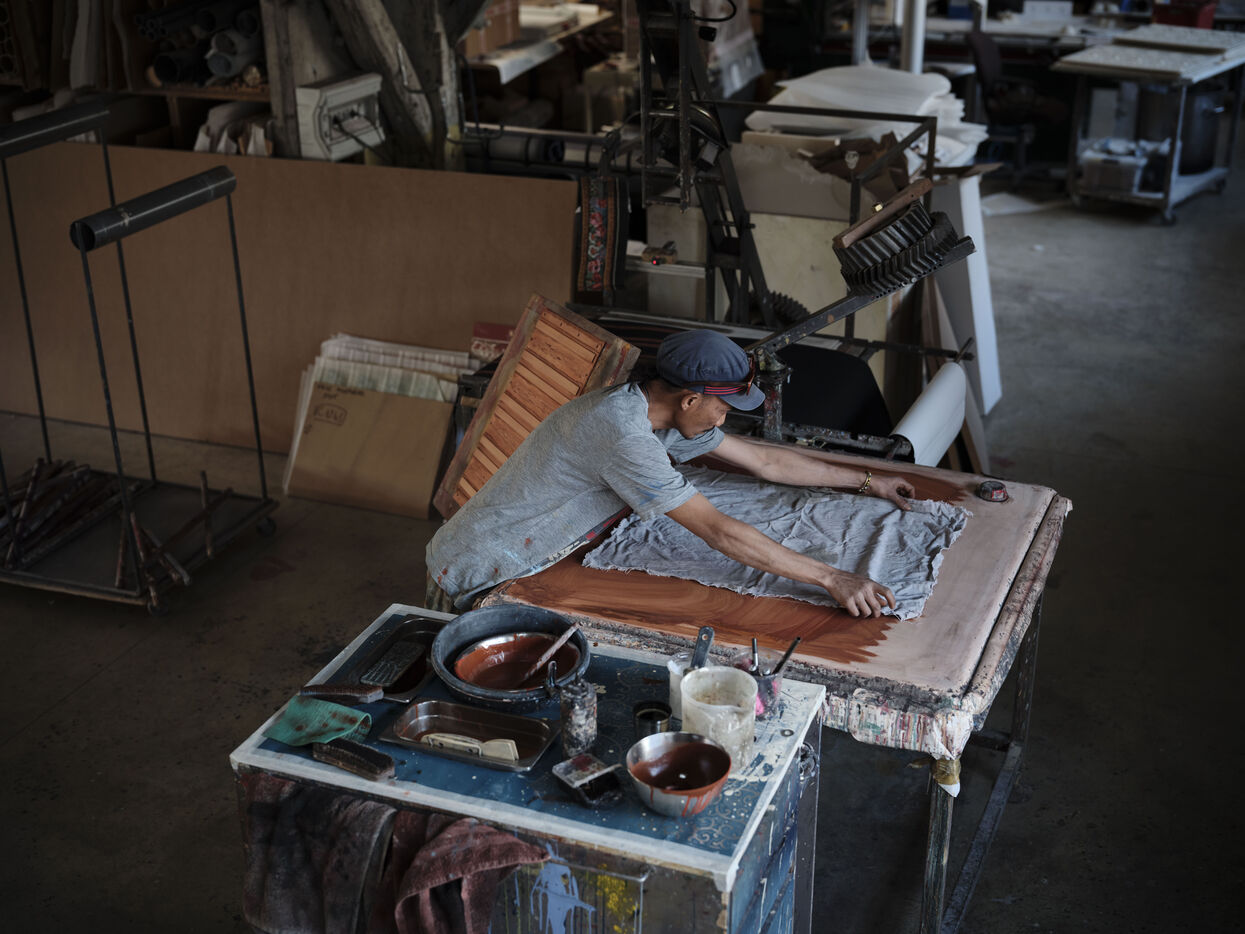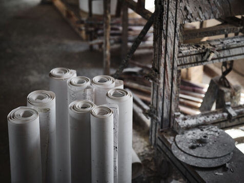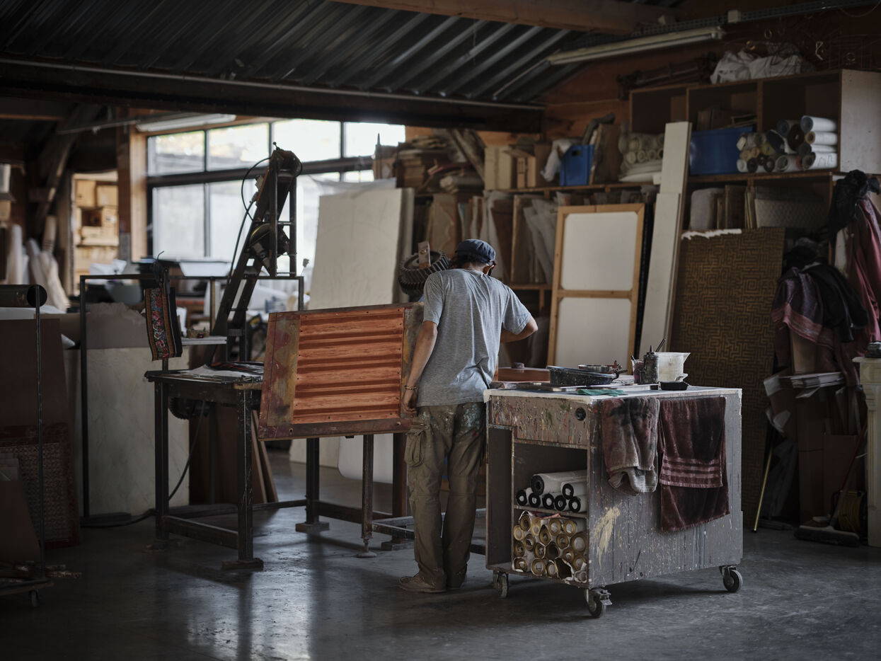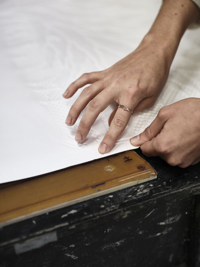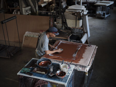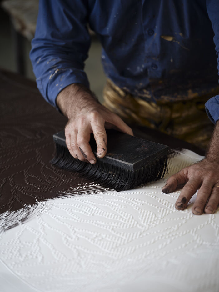 Discovering block printing on the premises of Atelier d'Offard, in Tours, and the manufacture of stoneboard.