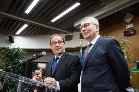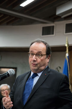 Visit of the former president of the french Republic François Hollande in Rezé to attribute the medal of "Chevalier des Arts et des Lettres" to the mayor Gérard Allard. Rezé, France - November 28 2018