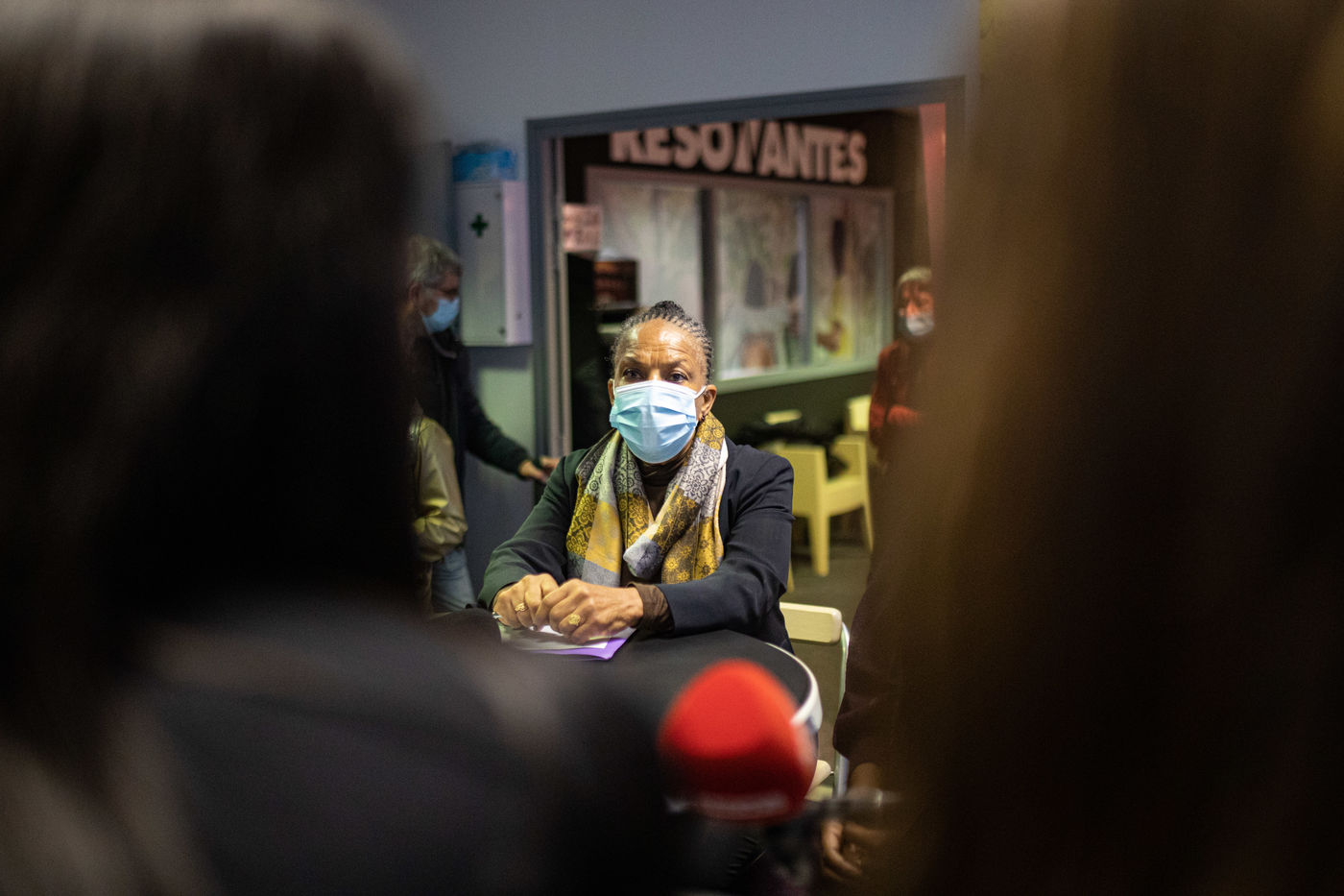 Christiane Taubira, former Minister of Justice and possible candidate for the 2022 french presidential election, visits Nantes to meet with members of resonantes. France, Nantes, 2022-01-10. Photos by Jeremie Lusseau / Hans Lucas