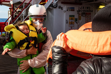 J'ai eu l'occasion de couvrir la onzième rotation en Méditerranée Centrale de l'Ocean Viking. Elle s'est déroulée au mois de mars 2021 et a donné lieu au sauvetage de 116 personnes, hommes, femmes et enfants fuyant la Libye, qui ont pu être débarquées dans le port d'Augusta en Sicile.