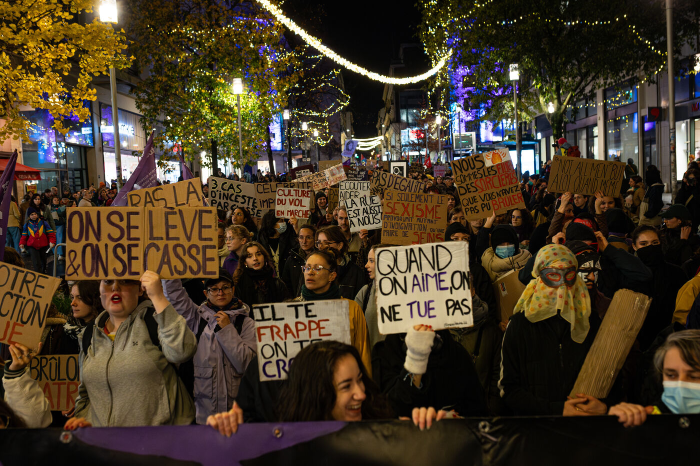 Thousands of people marched through the rainy streets of Nantes on the International Day for the Elimination of Violence against Women to protest against sexist and sexual violence.