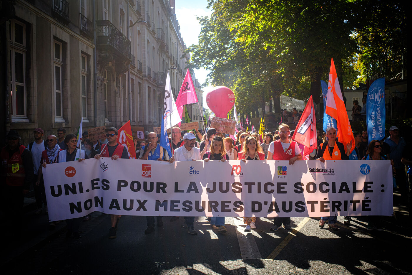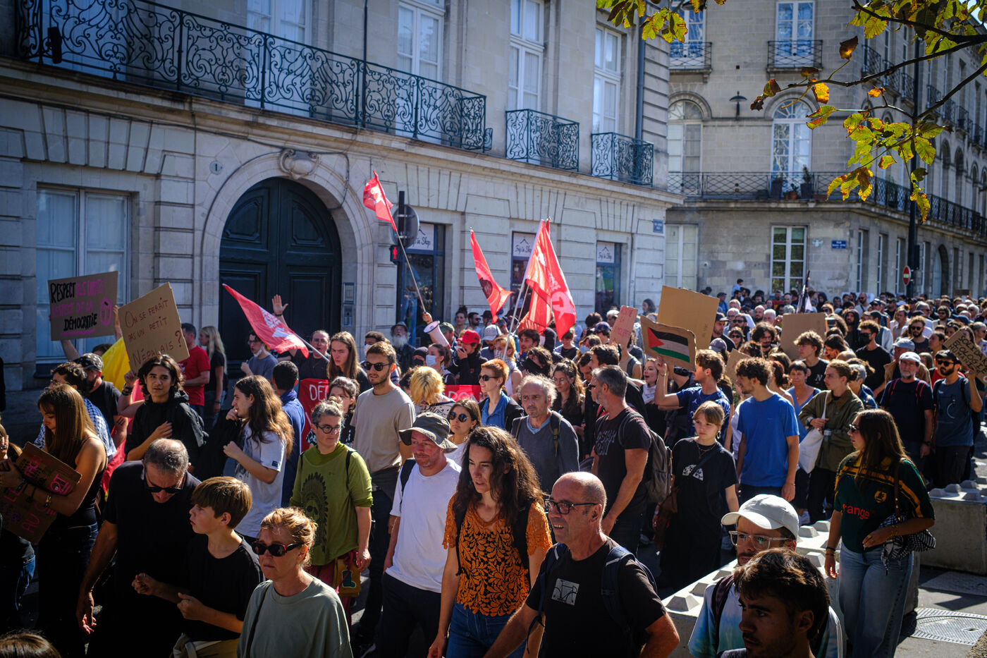 Thousands of people demonstrated in the streets of Nantes on 18 September 2025 during the national mobilisation against the government's budgetary austerity measures, organised by the main trade unions.
