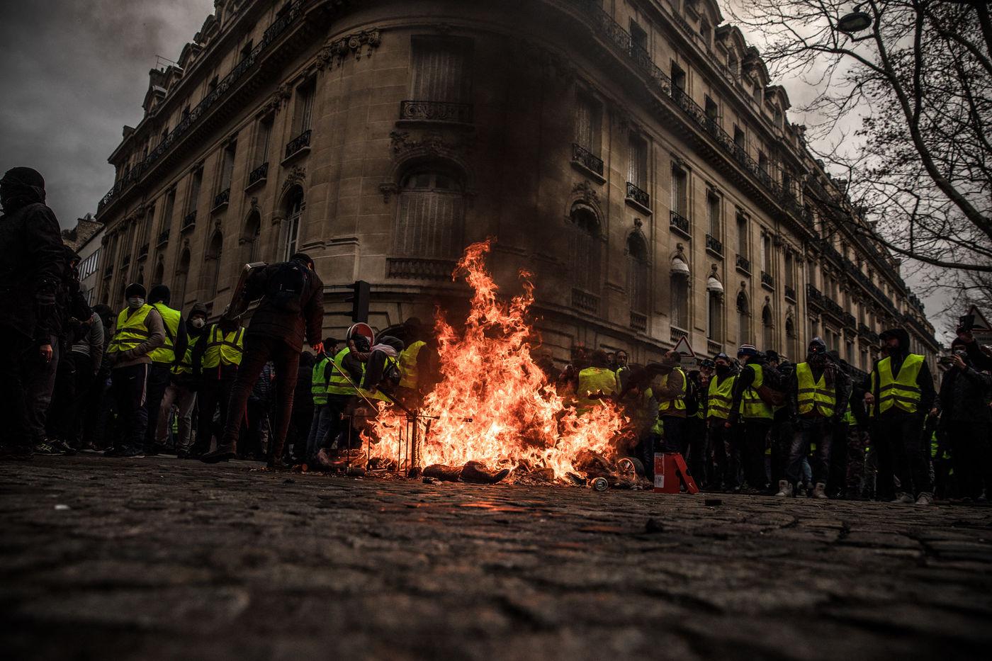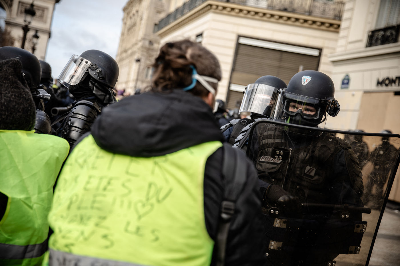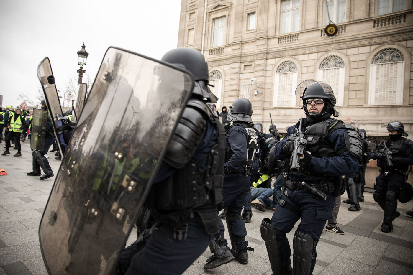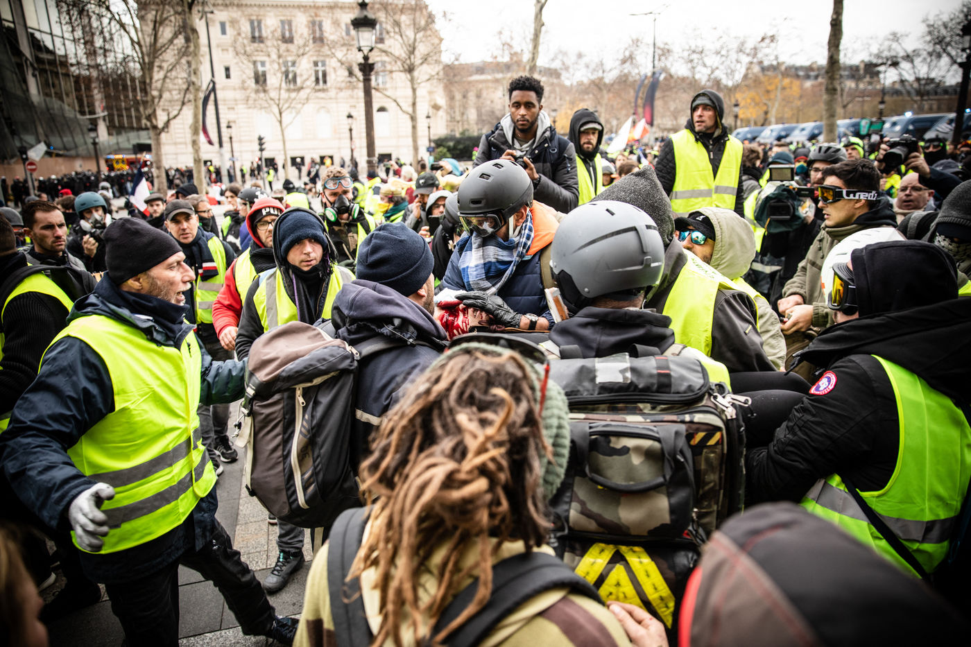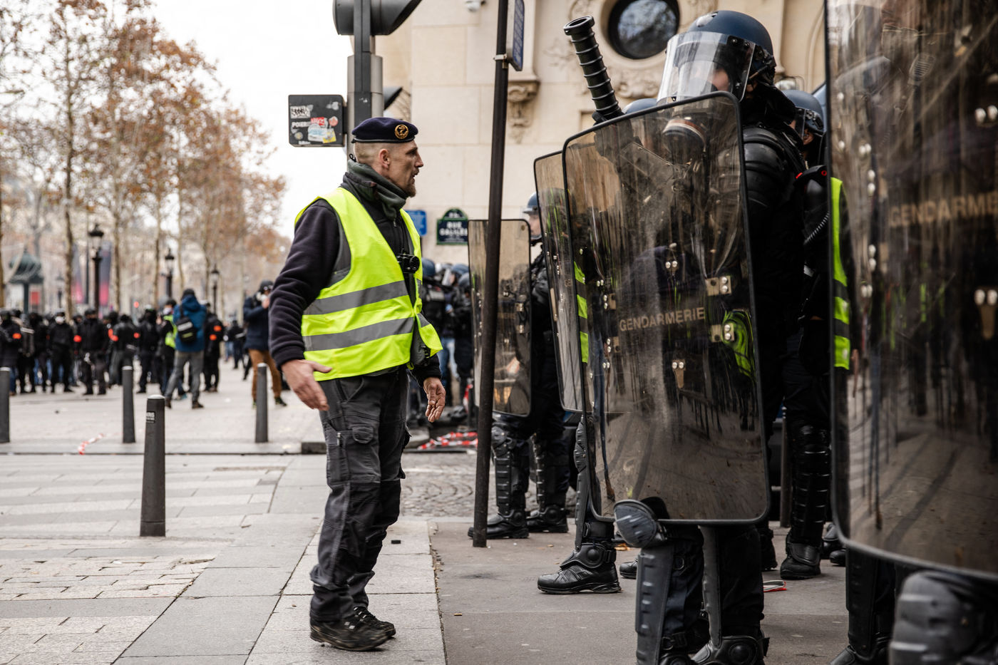 Act IV of the yellow vests in Paris, on 8 December 2018, was marked by an unprecedented mobilization of the police (8,000 members). About 10,000 yellow vests (excluding the "climate march" that took place on the same day) demonstrated in the capital. The Champs Elysées was one of the main gathering points. Clashes between the police and the yellow vests broke out in the early afternoon and continued until the evening.