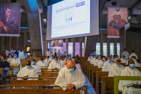Assumption Mass in the underground Basilica of St Pius X of the Sanctuary of Lourdes chaied by Cardinal Pietro Parolin, Secretary of State of the Holy See. August 15, 2020.