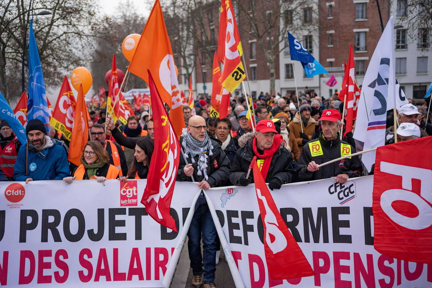 Journée de grève, manifestation intersyndicale et interprofessionelle contre la réforme des retraites à l'appel de plusieurs syndicats dont la CFDT, CGT, FO, CFE-CGC, CFTC, UNSA, Solidaires et FSU.