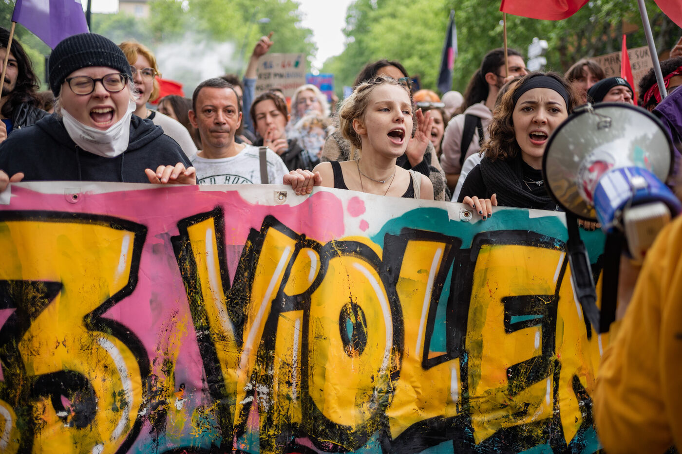 Défilé du 1er mai à Toulouse, manifestation nationale pour l'abrogation de la loi sur les retraites.
