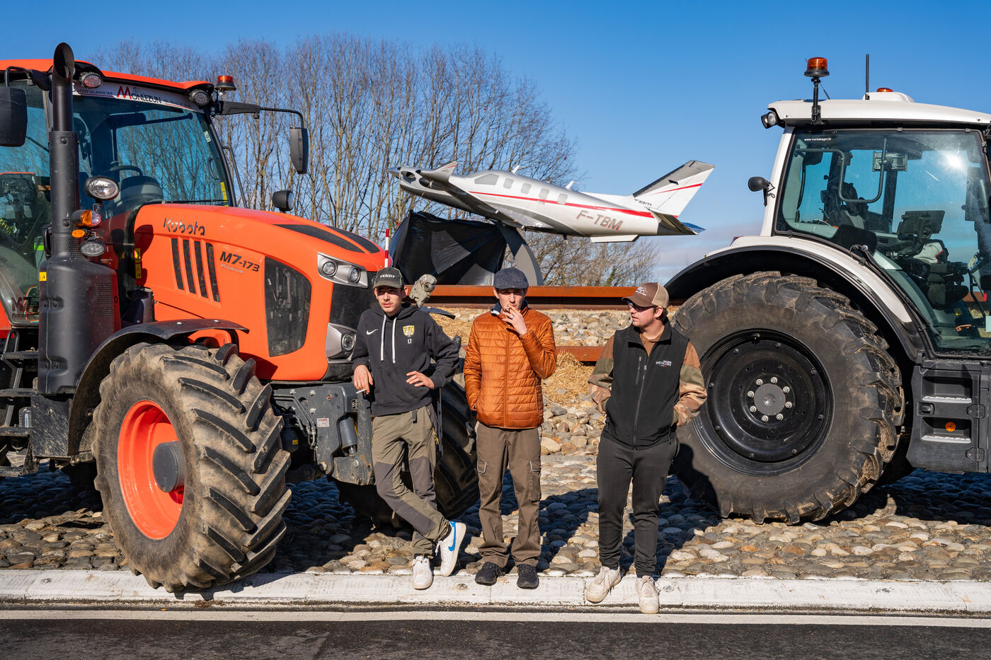 Farmers demonstration, 150 tractors on the A64 freeway between Tarbes Est and Tarbes Ouest.