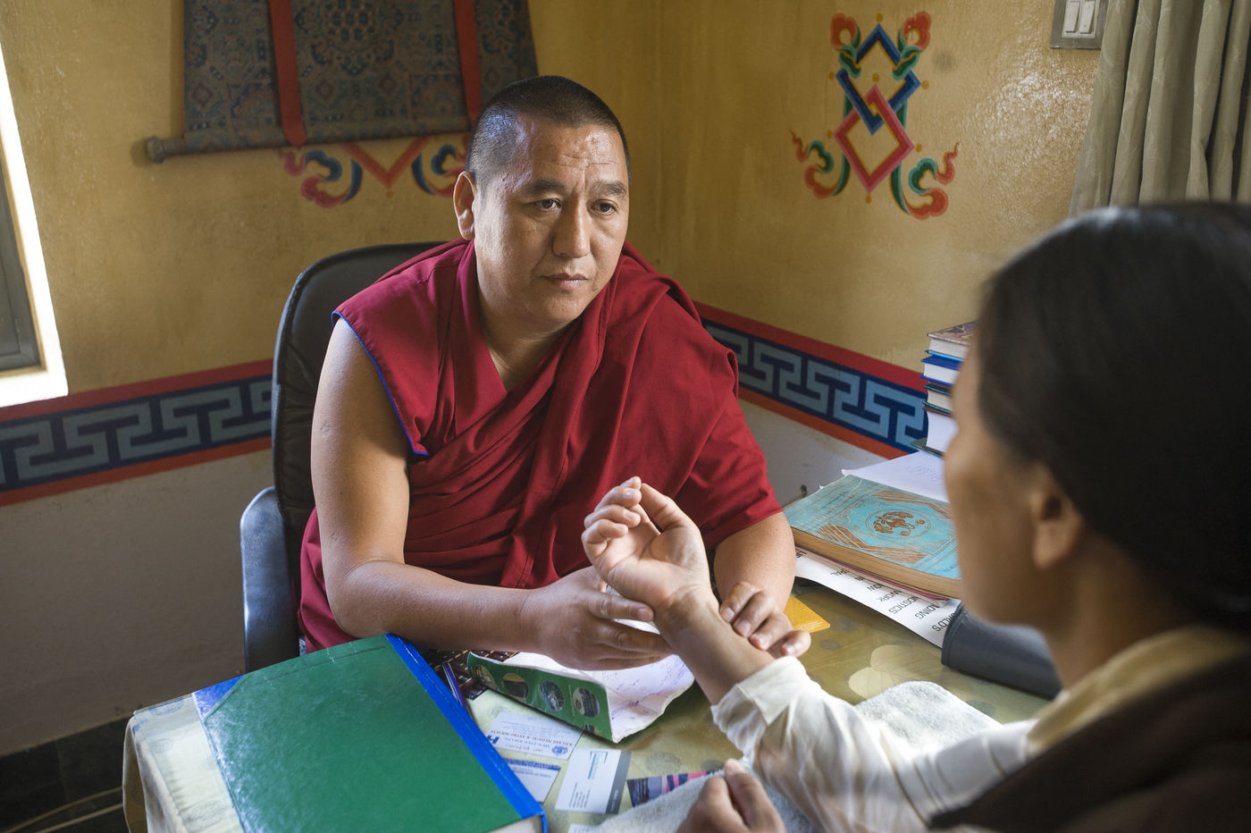 NEPAL, KATMANDOU. 01/03/2012. Tibetan medecin in Shechen clinic. Traditionnal medecin with pills made with plants. Photograph: JM DELAGE / HANS LUCAS