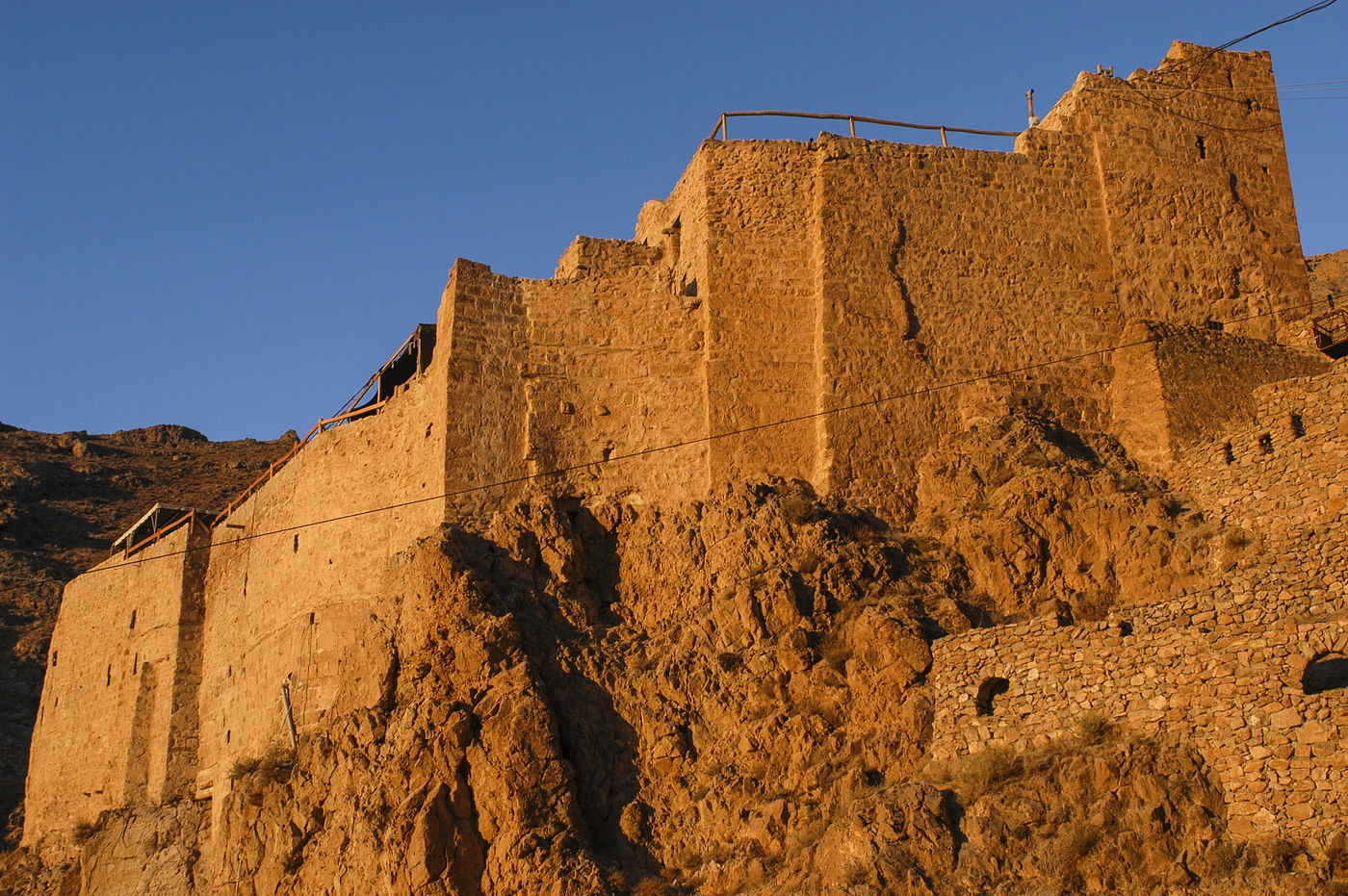 Deir Mar Moussa, in French "Monastery of Saint Moses the Abyssinian", stands about 90 km north of Damascus in Syria. 13 km from Nebek, a small road leads to the foot of the cliff where is perched Mar Moussa, then climb the stone stairs about twenty minutes. After having long been abandoned, the monastery was revived in the late twentieth century and houses a small double Western Syriac rite ecumenical religious community who advocates dialogue between religions and revives the tradition of hospital monks. In 1982 the young Italian Jesuit Paolo Dall'Oglio arrives at the ruins of Deir Mar Moussa. He settles there for a ten-day spiritual retreat and discovers three priorities: prayer, manual work, and hospitality. The Muslim-Christian rapprochement imposes itself on him as a necessity. In 1984, he was ordained priest of Syriac Catholic rite and will work to raise the walls, first with the only contest of local volunteers and some European participants in summer camps of work and prayer. In 1991, with the deacon Jacques Mourad, Paolo founded "officially" under the authority of the Syriac Catholic Church dual monastic community, men and women, dedicated to four tasks: prayer, work, hospitality and dialogue. The choice of the Arabic language in the liturgical and social life emphasizes the integration of the community in the Syrian context, at the service of the inter-religious dialogue which is also the main theme of the library. Volunteers share the lives of sisters and brothers sometimes a few days, weeks, sometimes months or even years.
