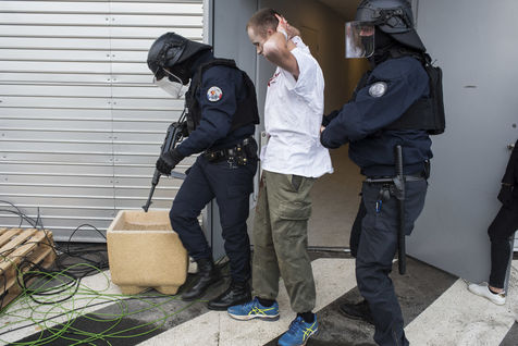 Les forces de l'ordre équipées de tout leur matériel d?intervention progressent selon un protocole qu'ils ont, eux aussi, maintes fois répété. Ils pénètrent finalement dans les locaux et un à un, ressortent les blessés qui sont pris en charge par les équipes d'urgentistes. Les blessés sont assis contre le mur, les urgentistes s'affairent, les civières arrivent et tous sont regroupés un peu plus loin, en vue de leur évacuation. Viking 76, l'hélicoptère du Samu de Rouen, vient se poser sur site. Les sapeurs-pompiers, eux aussi mobilisés, acheminent une à une les victimes jusqu'à l'hélicoptère. Des ateliers de travail pratiques, basés notamment sur un « serious game », un jeu vidéo très réaliste, mais aussi des procédures radio ou encore, des jeux de rôle. Les participants ont également expérimenté l'atelier de gestion des catastrophes, simulé par des figurines Playmobil, qui mettent en scène un plan Orsec Novi (Nombreuses victimes). Chaque figurine a un profil identifié.