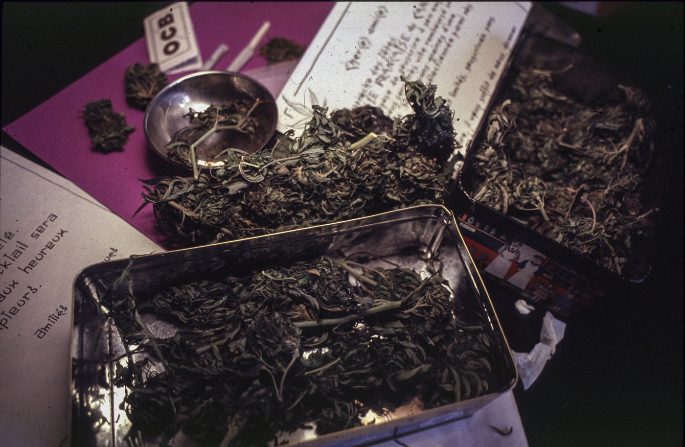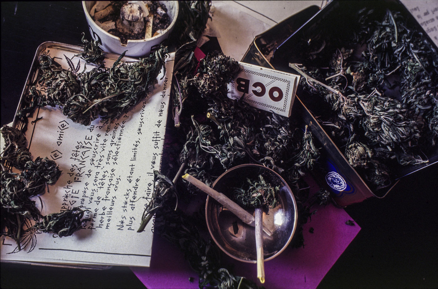 Illustration autour de la consommation de cannabis. Préparation d'un joint d'herbe.