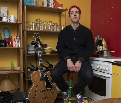 Musicians in their kitchen
