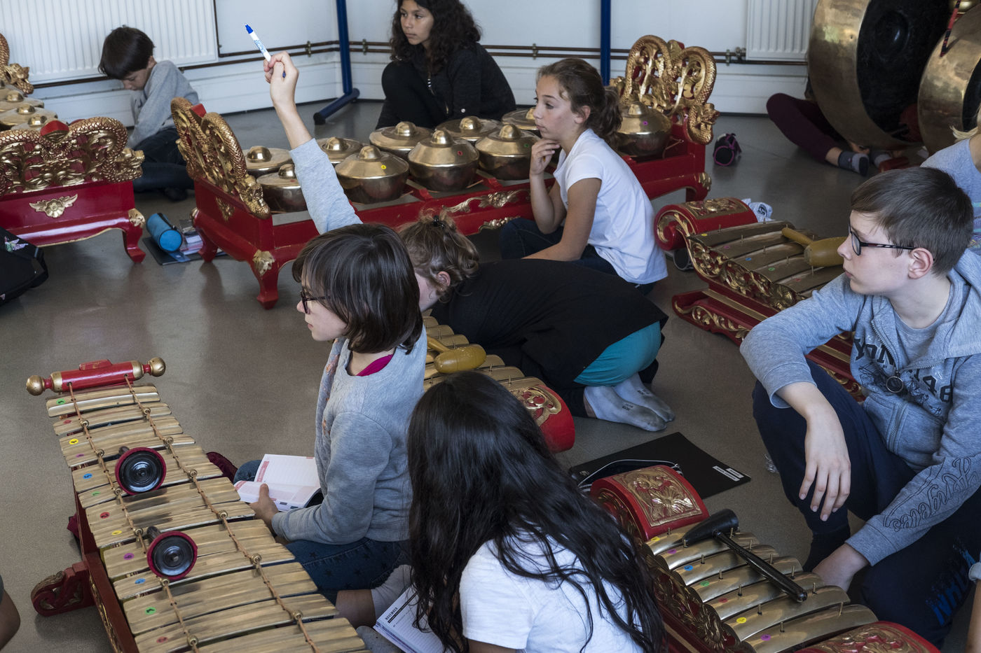 Une professeure de musique a enseigné le Gamelan, un instrument indonésien aux élèves de son collège.
