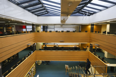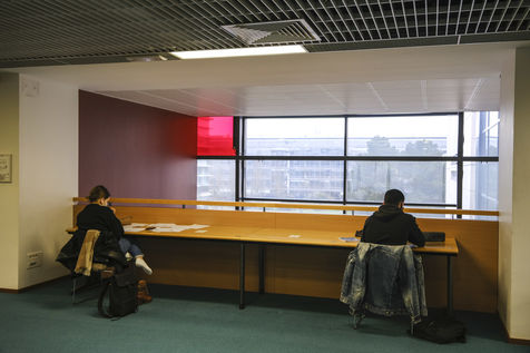 Etudiants travaillant dans la mediatheque universitaire .