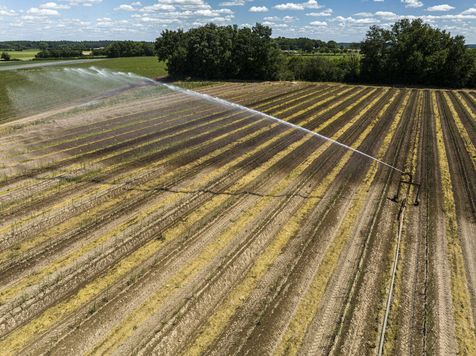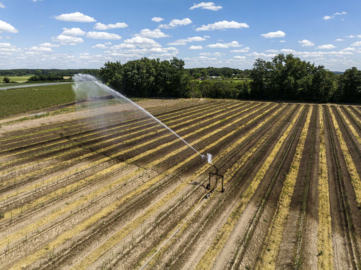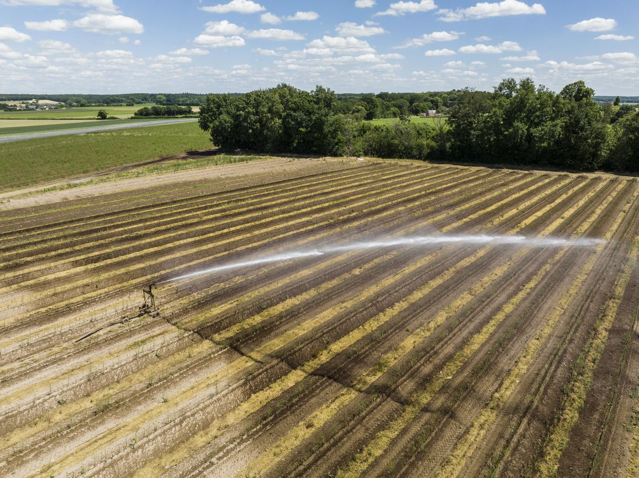 MAINE ET LOIRE. Secheresse. Arrosage des cultures avec des arroseurs automatiques