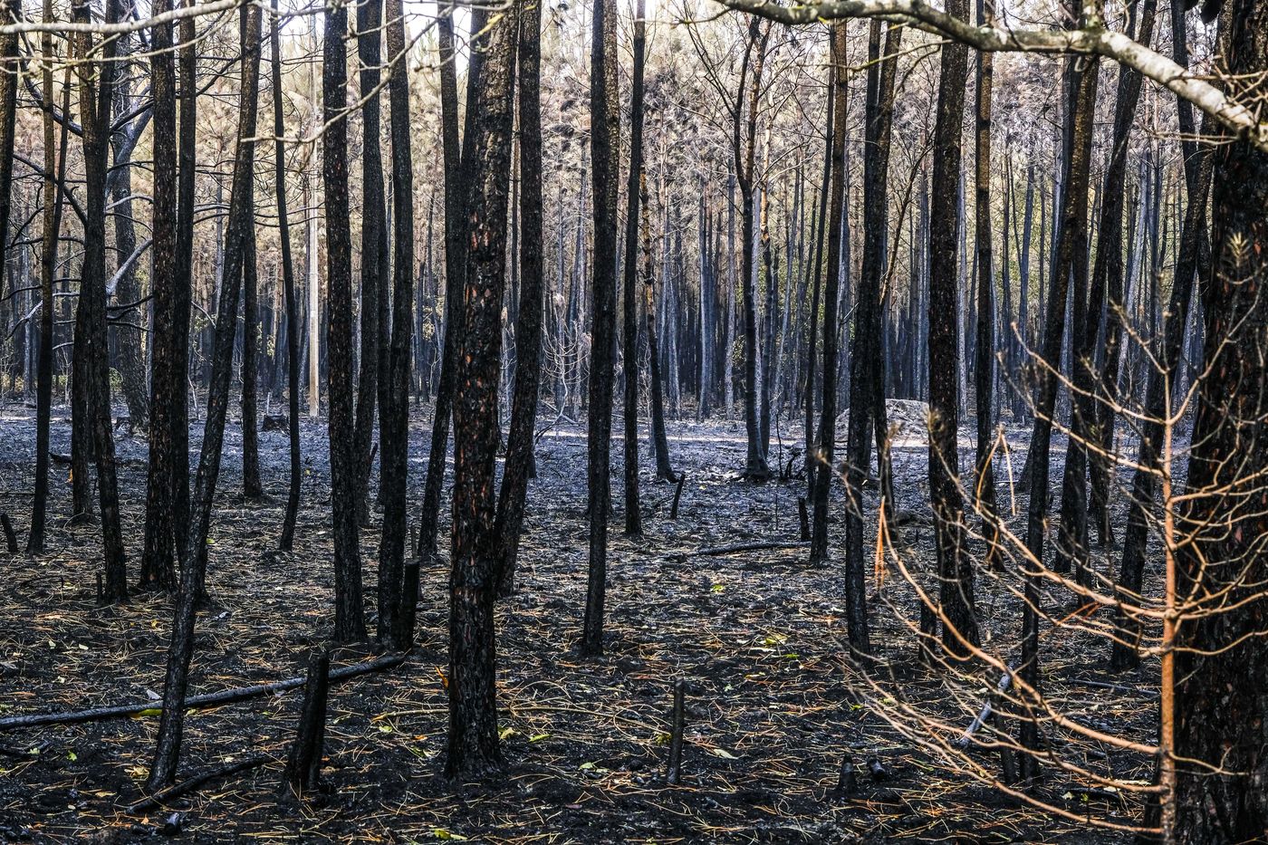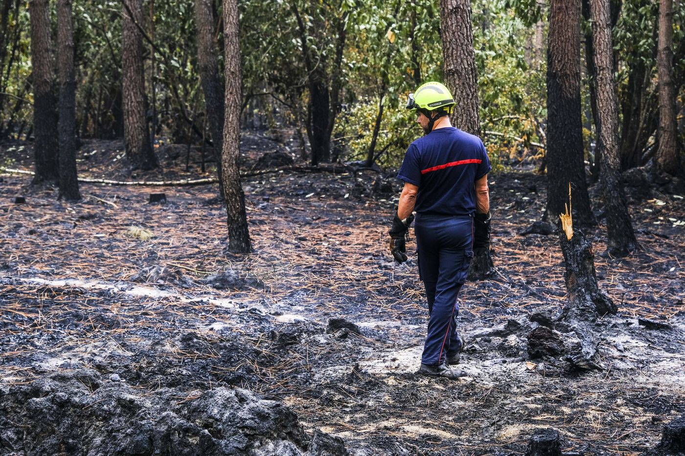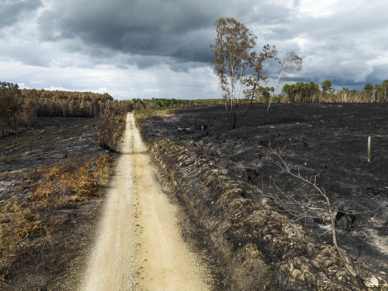 One week after the fire that destroyed 1500 hectares of forest. A spectacle of desolation. The firemen remain on guard and the technical services secure the forest