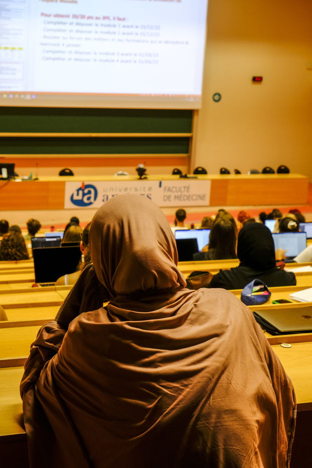 Faculty of Medicine of Angers. It's the start of the new year for the new students. In one of the amphitheatres, information session to prepare their first year.