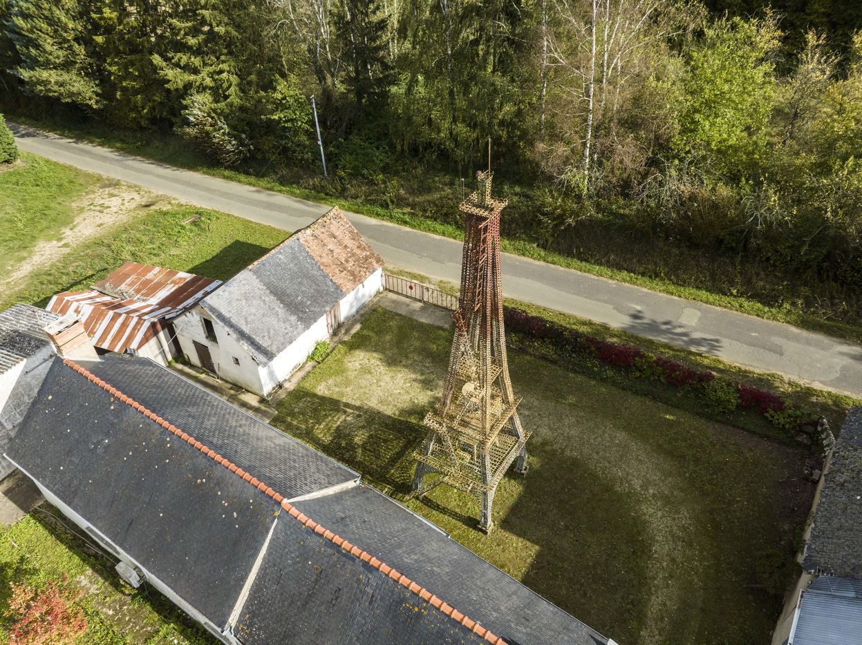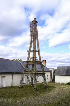 For sale, a replica of the Eiffel Tower. In Fougere, a municipality of Bauge in Anjou, in the east of Maine-et-Loire, an amazing building could soon disappear from the landscape. This Eiffel Tower is more than 16 metres high, made entirely of horseshoes welded together one by one. There would be no less than 7,500 of them, all gleaned from the Saumur cavalry.) With the help of his children, its builder, Henri Travert, took four years to erect it in his yard. It is for sale at 10,000 euros.