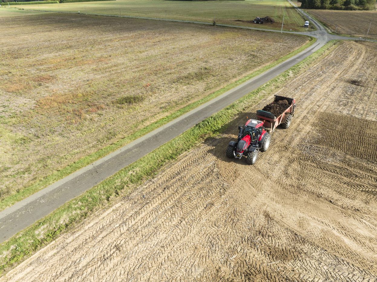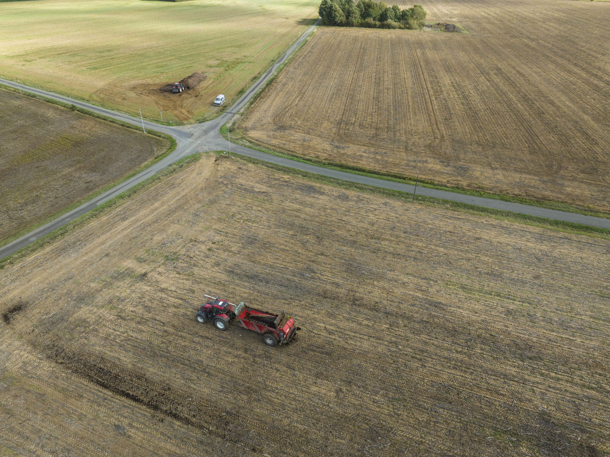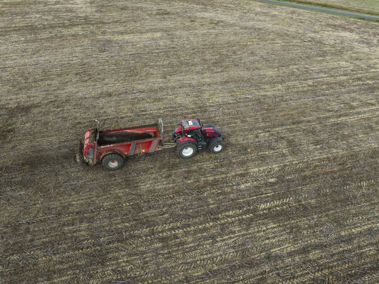Epandage de fumier sur des champs en Maine et Loire