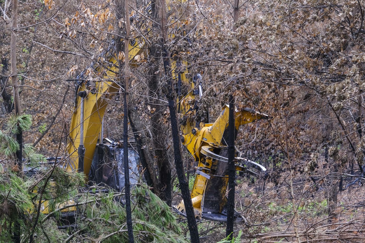 FORESTS IN ANJOU AFTER THE FIRES. THE BIG CLEAN-UP.