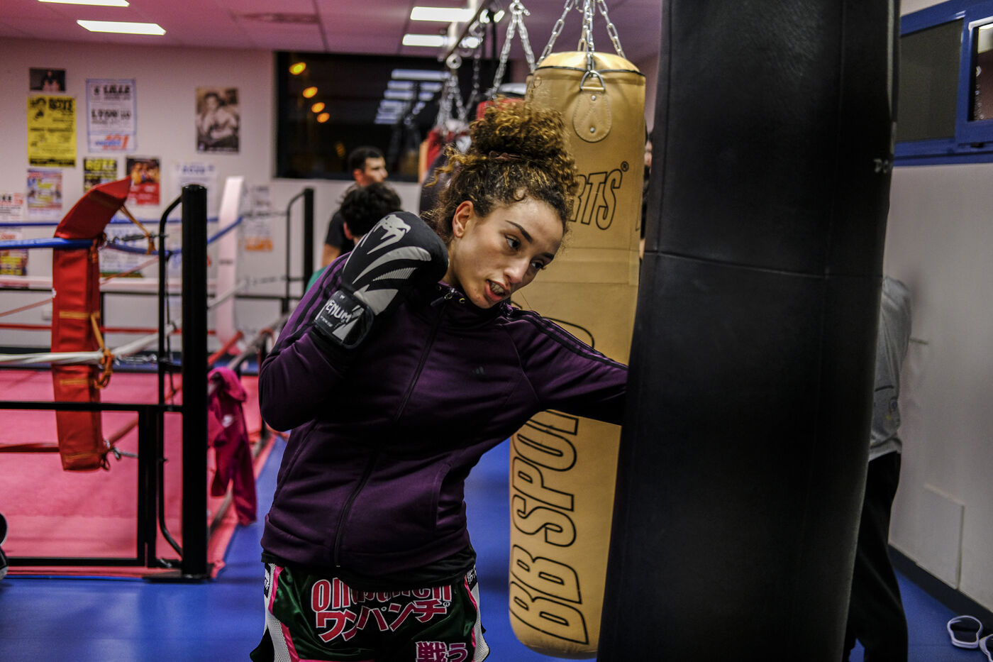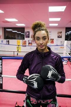FRANCE. ANGERS. 24/01/2023. Boxe thaï. The boxer from Angers, Nada Ayez, already French champion in 2022, trains in her club in Trelazé, near Angers. She hopes to realise her dream. To participate in the Olympic Games in Paris in 2024.