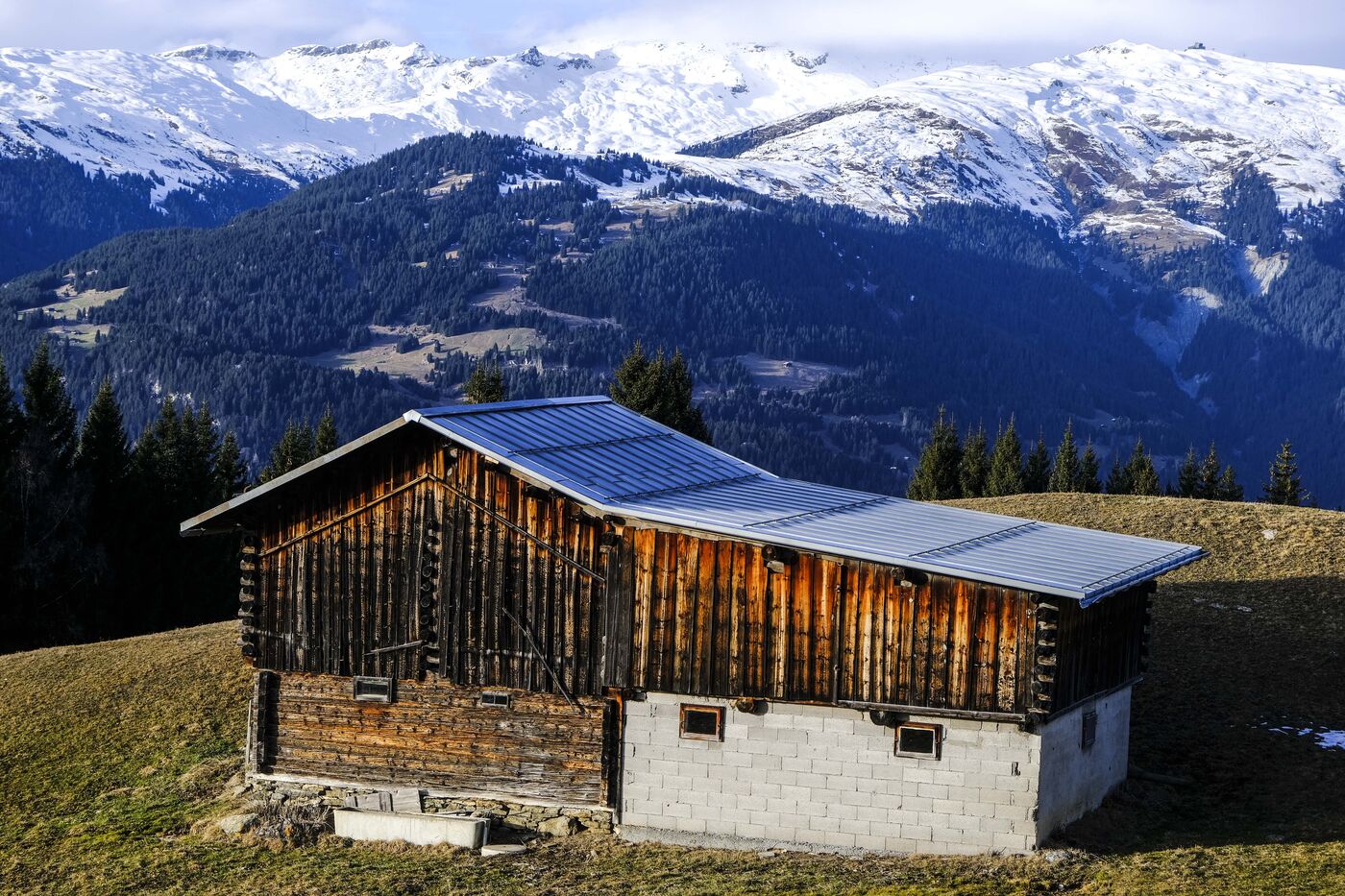 SUISSE ALEMANIQUE. LES GRISONS. Janvier 2023. Illustrations de paysages alpins en hiver. Montagnes, chemins, neige.