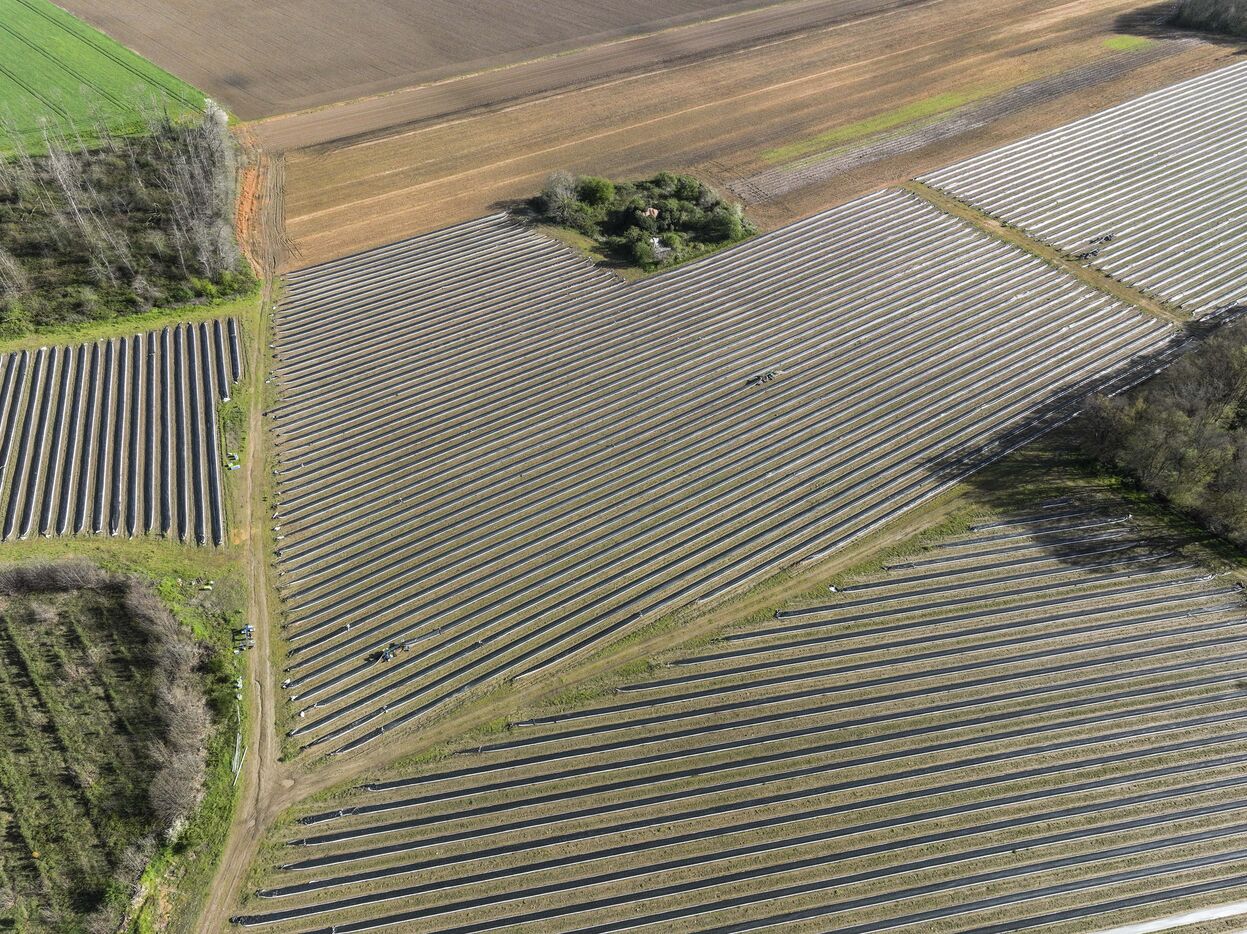 France, Bauge en Anjou, Maine et Loire, 2023-04-13. Production des asperges