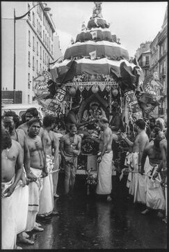 FRANCE.PARIS. 1996. The Sri Lankan Tamil community organised the first procession in honour of Ganesh, the elephant-headed god. Thousands of members of this community, still little known at the time, marched through the north of Paris. Since then, the parade has taken place every year at the end of the summer. But it is now attended by hundreds of Parisians attracted by the exoticism of the parade. Tamils are almost a minority on the streets of Paris.
