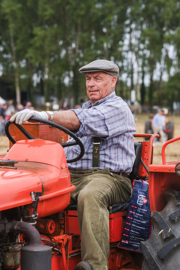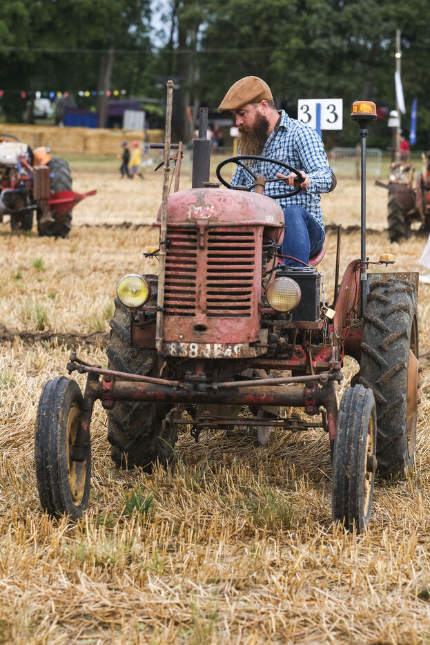 FRANCE, BAUGE EN ANJOU. 14 August 2024 - The annual agricultural show is the occasion for a ploughing competition. Everyone is using vintage tractors and equipment. Photographer: Jean-Michel delage/Hans Lucas