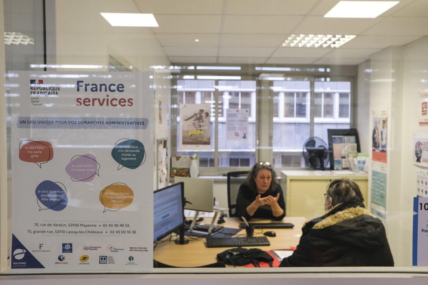 FRANCE, MAYENNE. 06 February 2025. France services is a network of more than 2,700 reception and support centres to help you with your day-to-day administrative tasks. Wherever you live, in town or in the country, the nearest France services centre is no more than 30 minutes away by car. For more than 9 out of 10 French people, the journey takes less than 20 minutes. Photographer: Jean-Michel Delage / Hans Lucas