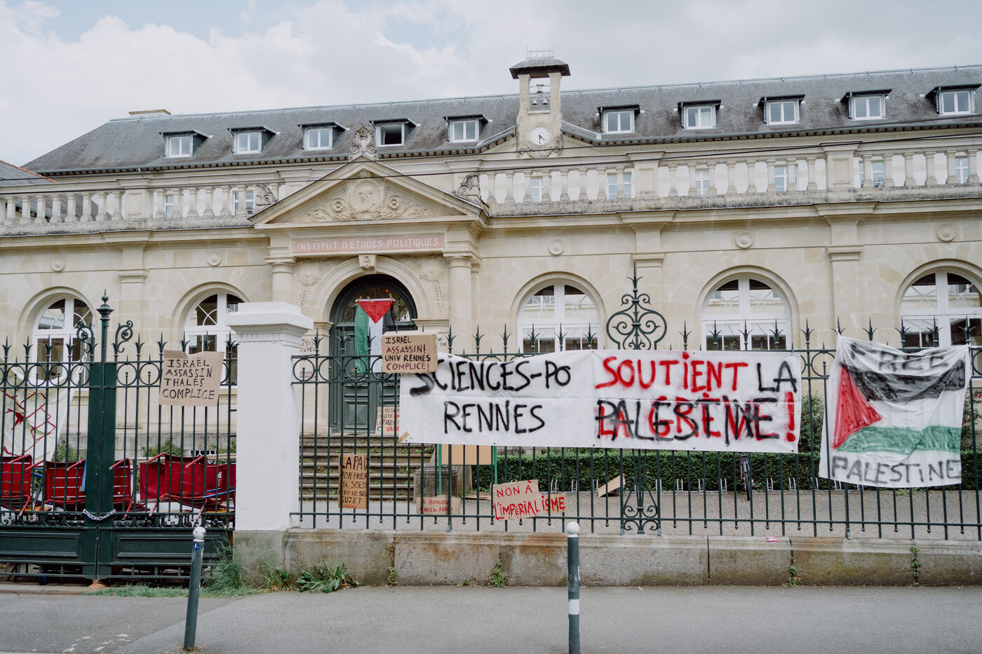 Students from Sciences Po Rennes blocked their school on Tuesday 30 April 2024 in support of the Palestinian people and other students mobilised and arrested in Paris and around the world.