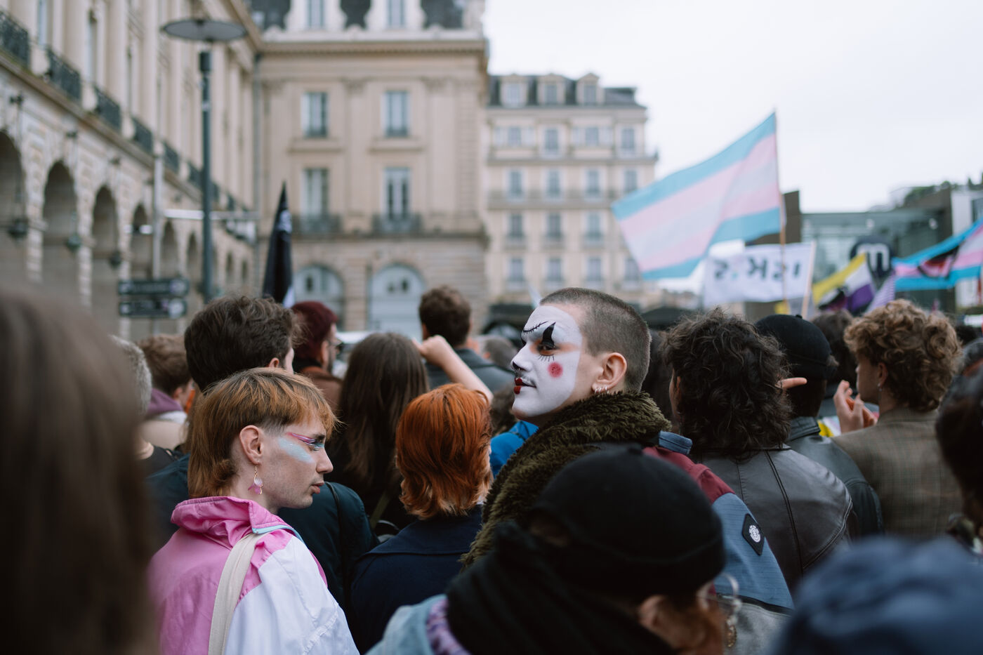Hundreds of people gathered in support of trans rights in Rennes on 4 May 2024.