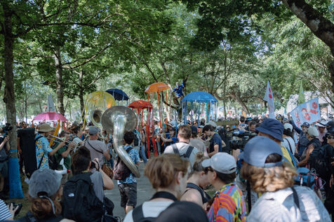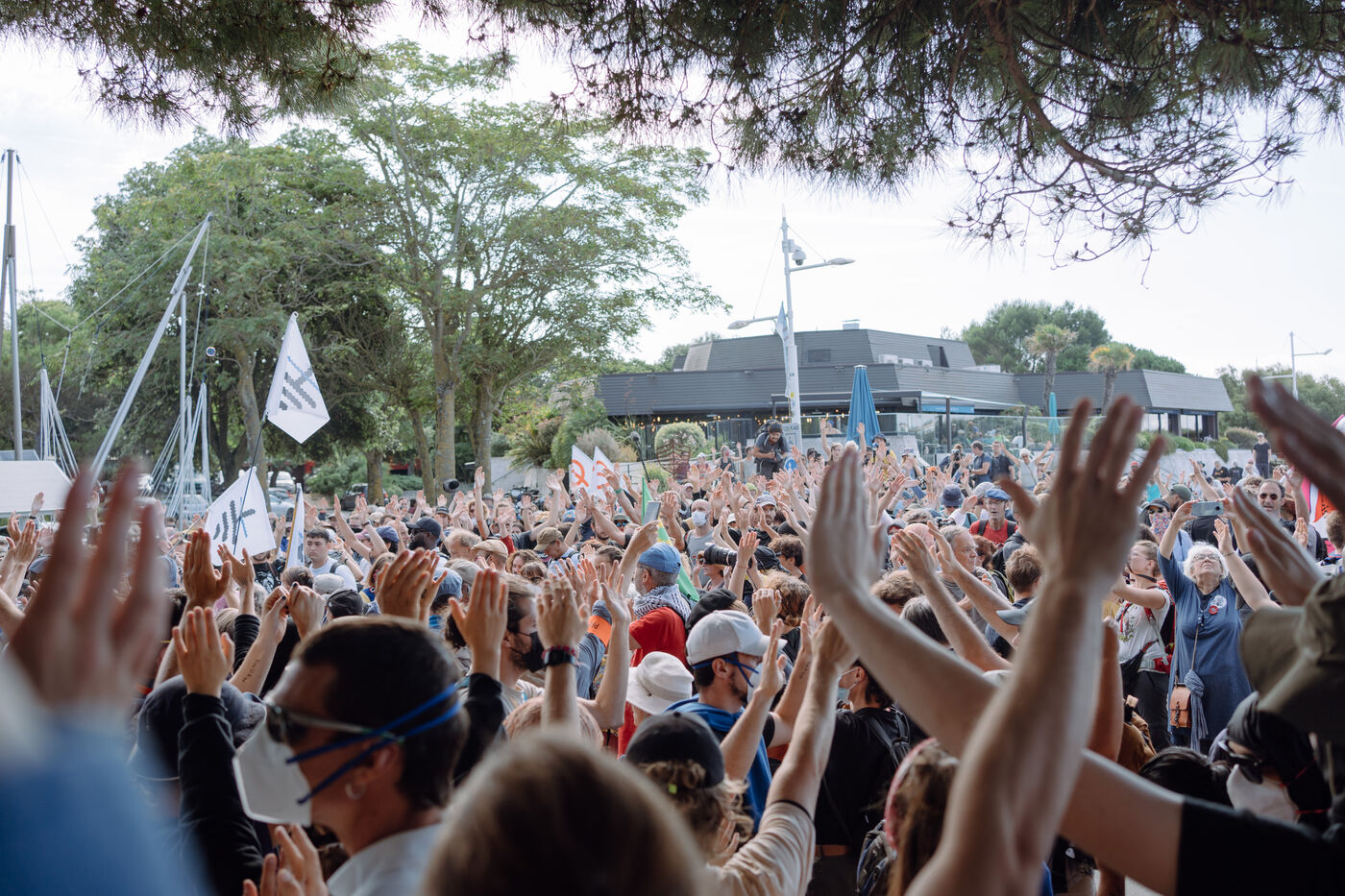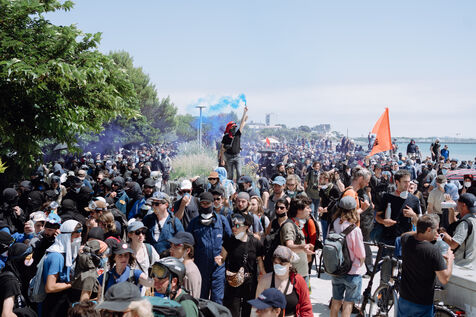 A demonstration against mega-basins and agro-industry was organised by Soulèvements de la terre and the Bassine non merci collective in La Rochelle on 20 July 2024. According to the organisers, around 10,000 people turned out despite the prefectural ban. The rally lasted almost seven hours, with speeches, the march (whose trajectory deviated several times in the face of police barricades and charges), reunions between the different processions, and above all the festive moments, such as the final swim on Concurrence beach.