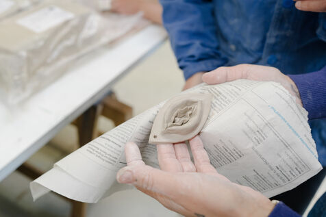 Charlotte Le Floch et Lilas Rozé, céramistes spécialisées dans le funéraire, ont plutôt l’habitude d’encadrer la confection d’objets en terre cuite dédiés à des proches disparu·es. Cette fois, elles ont choisi d’explorer un autre sujet « socialement tabou » : le plaisir intime.