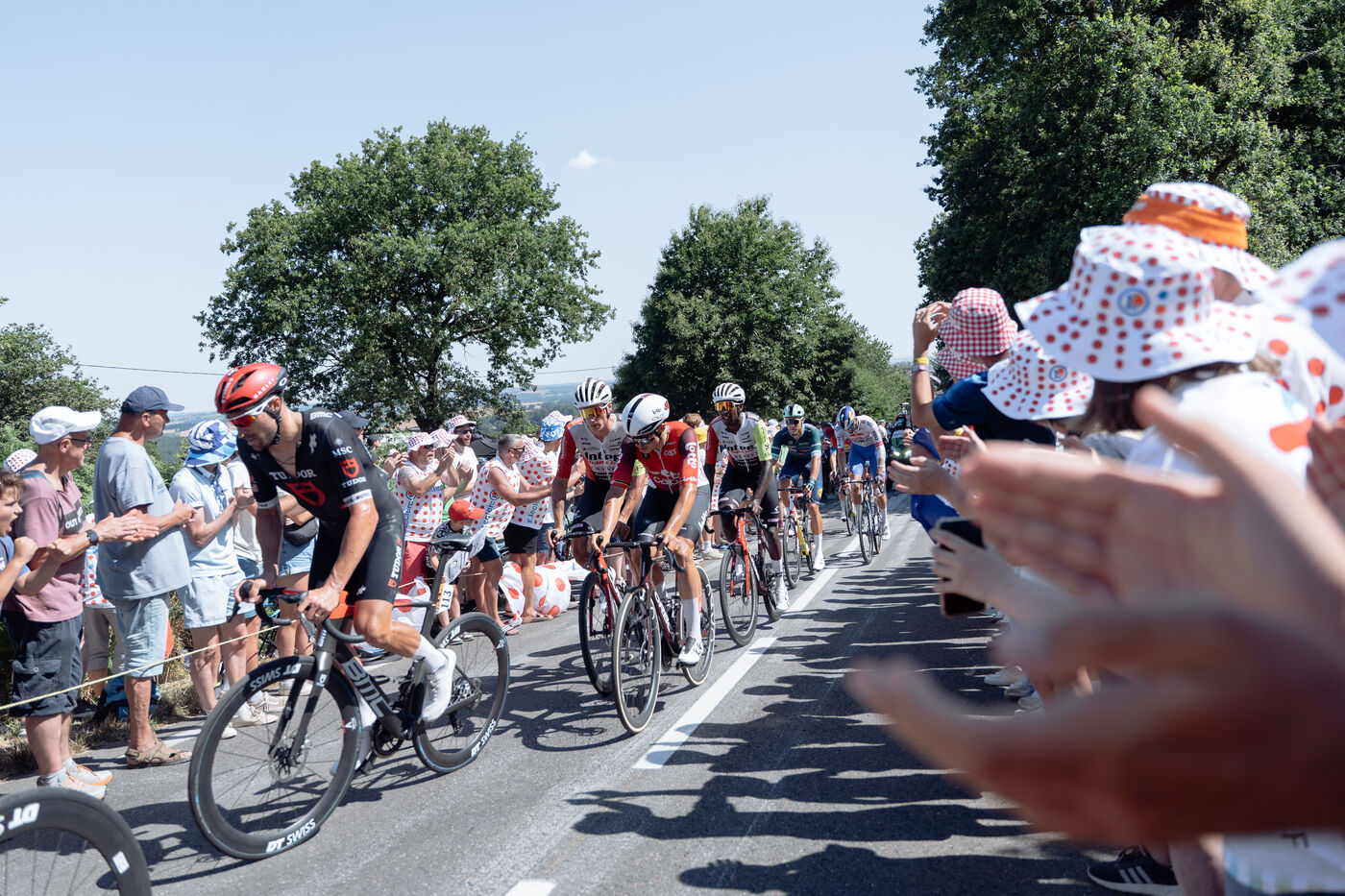 Mur-de-Bretagne in a white jersey with red polka dots