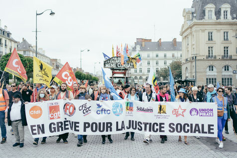 Day of strikes and demonstrations called by the inter-union coalition on September 18, 2025, in Rennes.