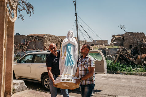 Le temps de la reconstruction a commence mais, parfois, un petit coup de pouce divin est de mise. Le 3 avril 2017, 15 reproductions de Notre-Dame de Lourdes ont ete envoyees en Irak pour remplacer toutes les statues de la vierge Marie detruites par les Islamistes.