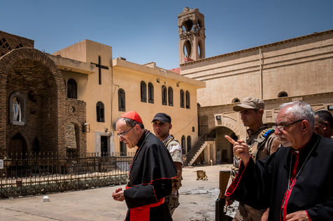 En juillet 2017, quelques jours apres la fin de la bataille de Mossoul, Mgr BARBARIN, alors archeveque de Lyon se rend dans la plaine de Ninive et notamment a Mossoul, conformement a la promesse faite a Mgr Petros MOUCHE archeveque syriaque catholique de Mossoul quelques annees plus tot.