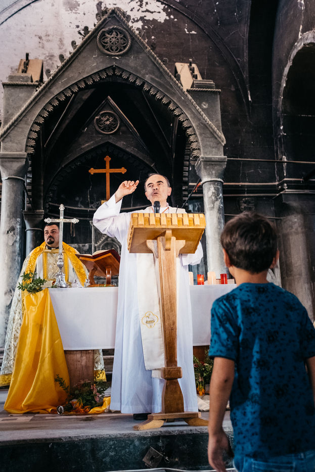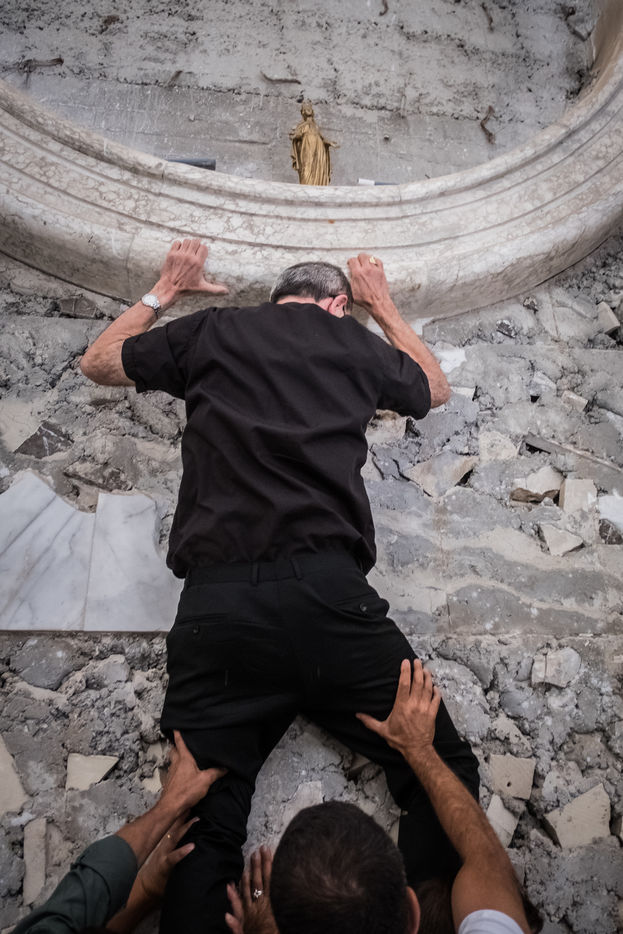 In July 2017, a few days after the end of the battle of Mosul, Archbishop BARBARIN, then Archbishop of Lyon, went to the Nineveh plain and in particular to Mosul, in accordance with the promise made to Archbishop Petros MOUCHE, Syriac Catholic Archbishop of Mosul, a few years earlier.